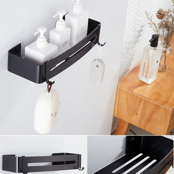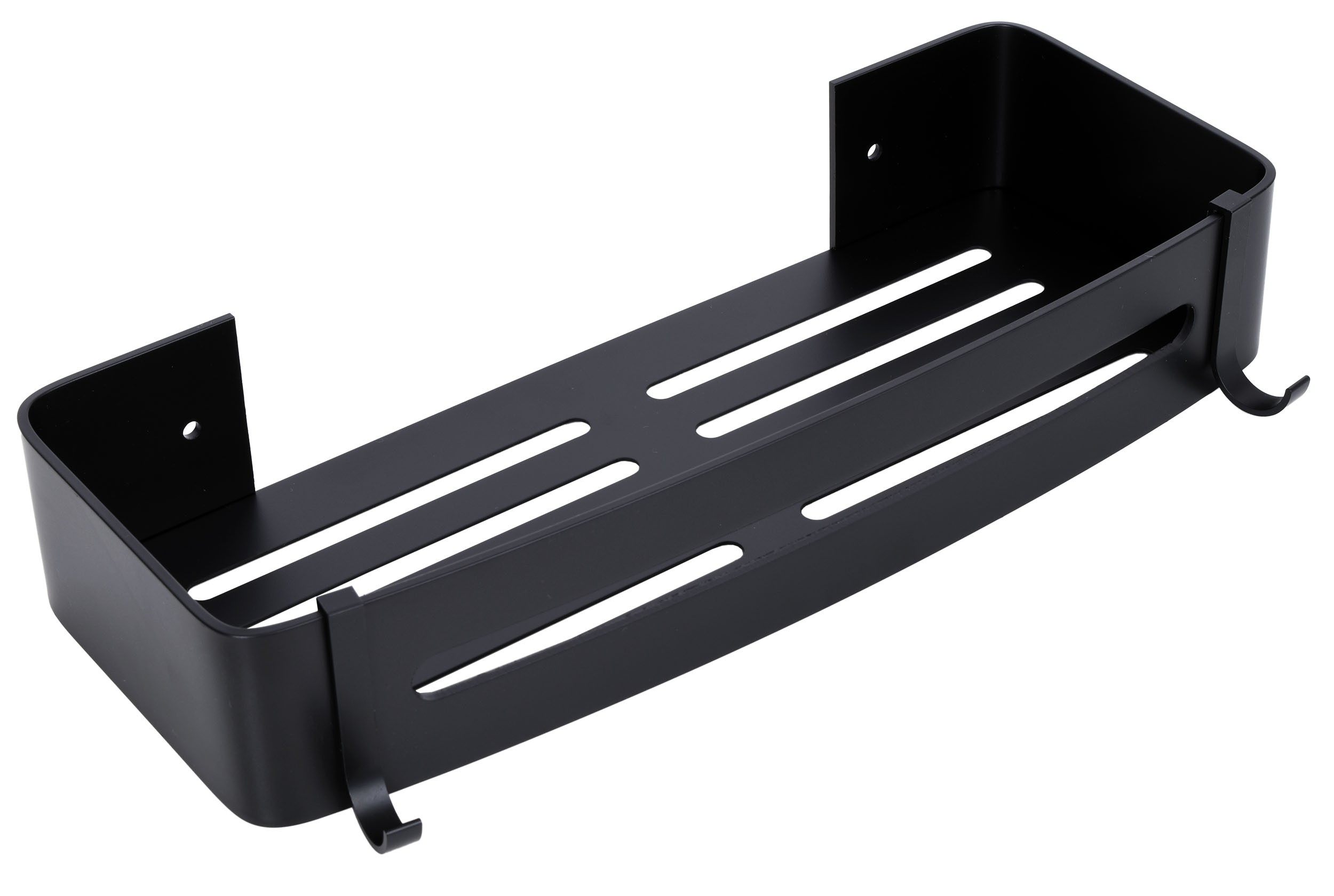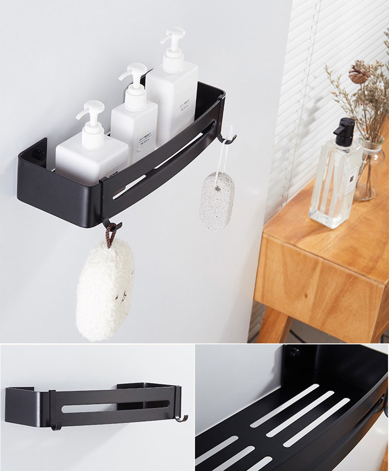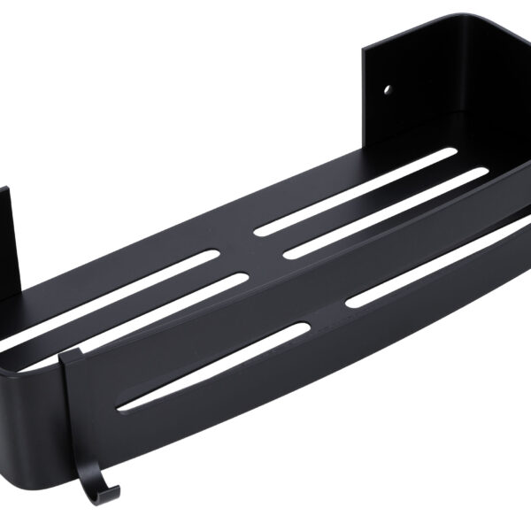 Półka łazienkowa Prela została wykonana z aluminium najwyższej jakości z zachowaniem dbałości o najmniejsze detale. Półka jest gładka, ma zaokrąglone krawędzie i wykończona jest na kolor głębokiej matowej czerni. Dodatkowe haczyki ułatwiają korzystanie z myjek i gąbek. Czarny kolor sprawia, że doskonale sprawdzi się w każdej łazience. Idealnie pasuje do stylu loftowego.