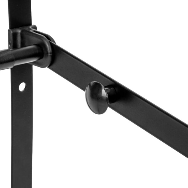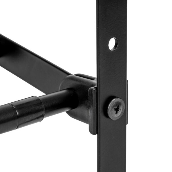 Stelaż półki Navia wykonany jest z malowanej proszkowo stali, co zapewnia jej trwałość i odporność na korozję.