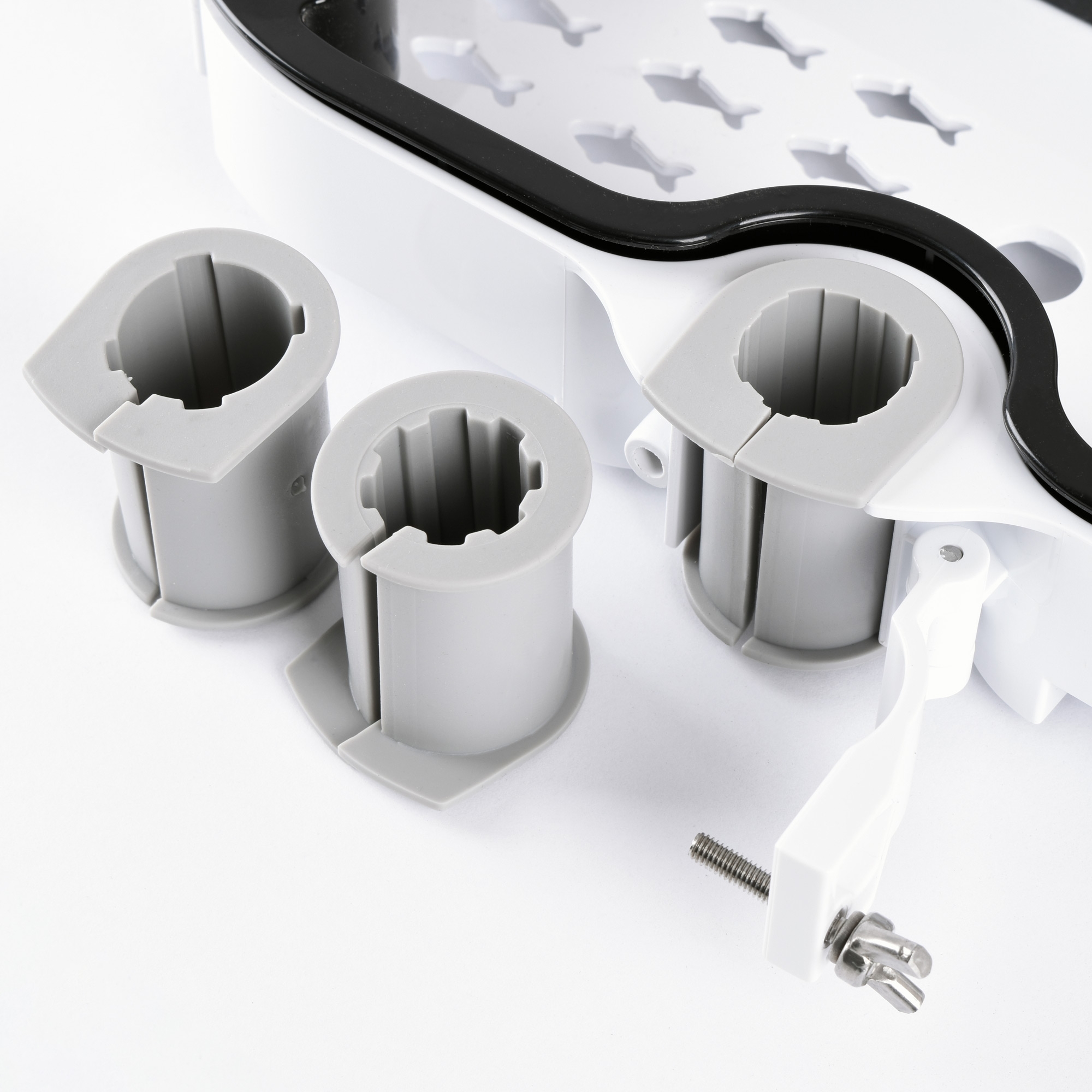 W zestawie: półka, śruba montażowa, 3 silikonowe nakładki na drążek
