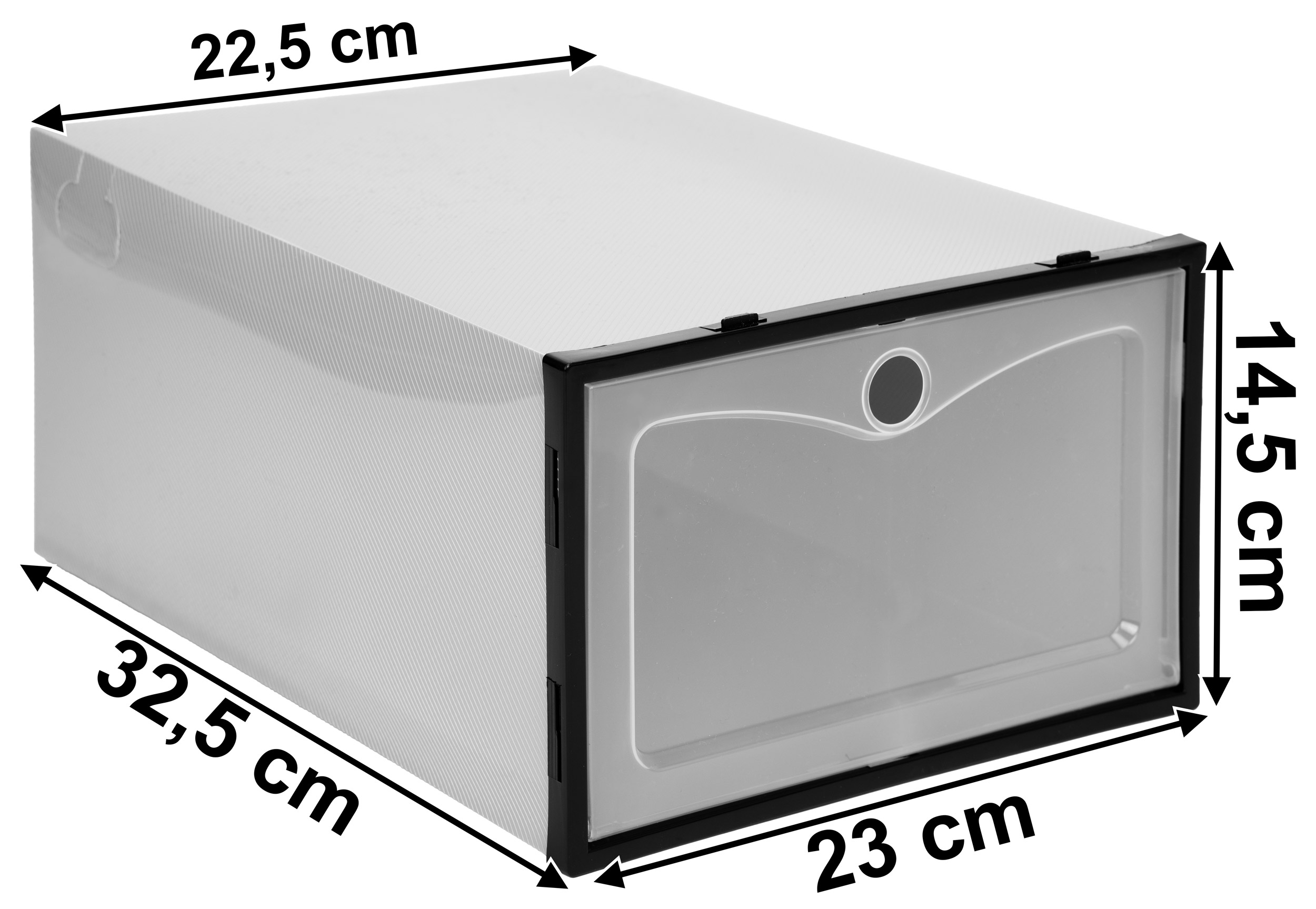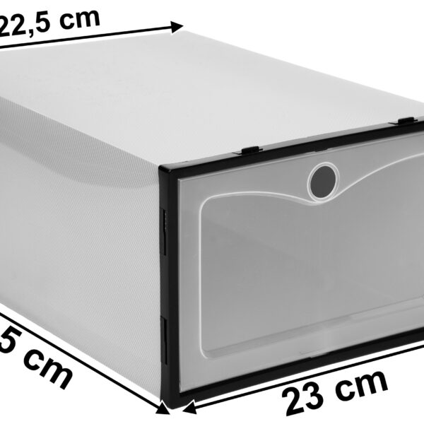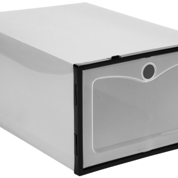 Przezroczyste okienko: Ułatwia szybkie i bezproblemowe odnalezienie odpowiedniej pary butów, eliminując konieczność otwierania każdego pudełka z osobna.