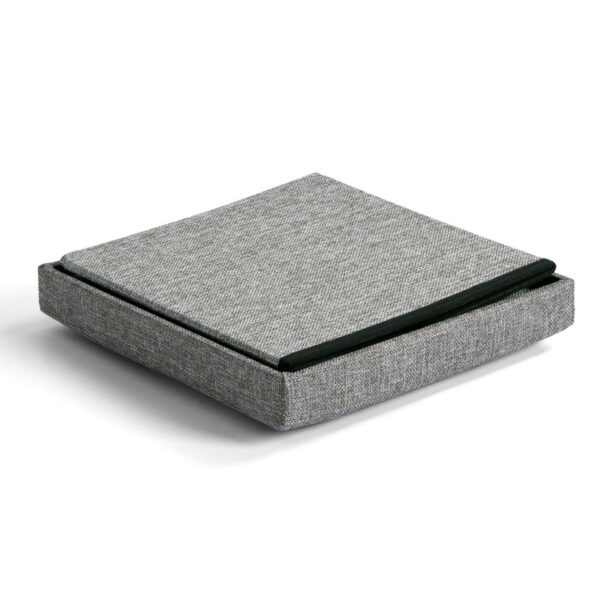 Siedzisko: płyta wiórowa, pianka, tapicerka w kolorze szarym.