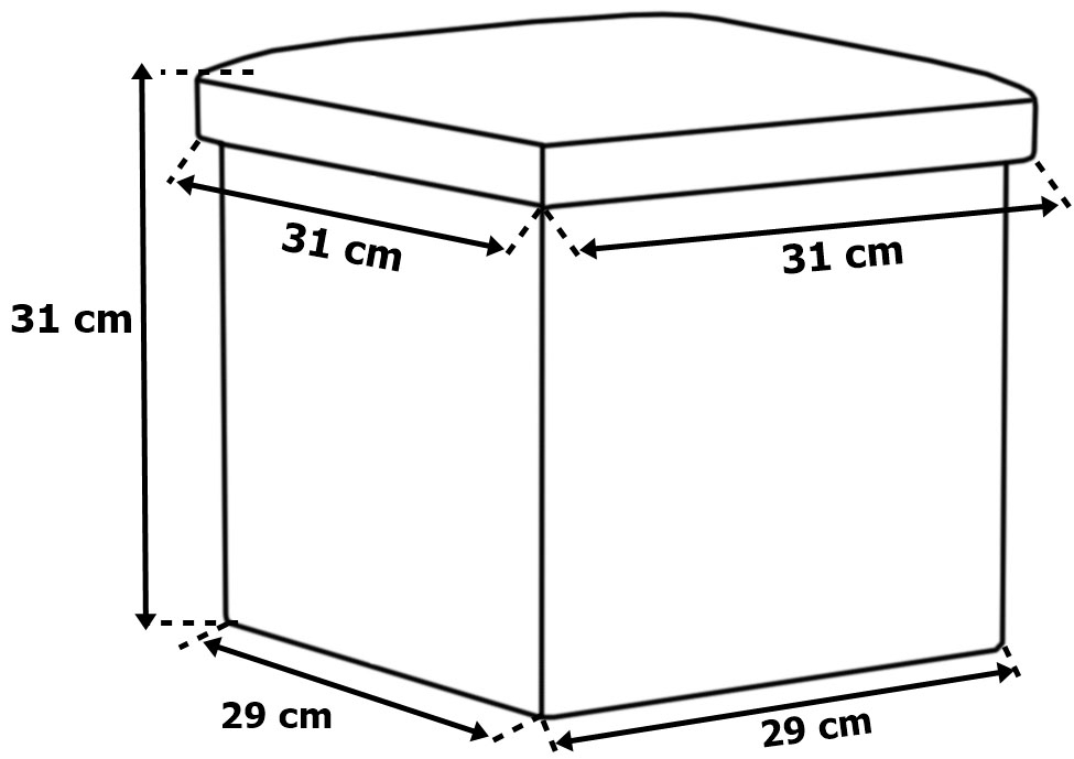 Wymiary wewnętrzne schowka: Szerokość: 27 cm x Głębokość: 27 cm x Wysokość: 27 cm