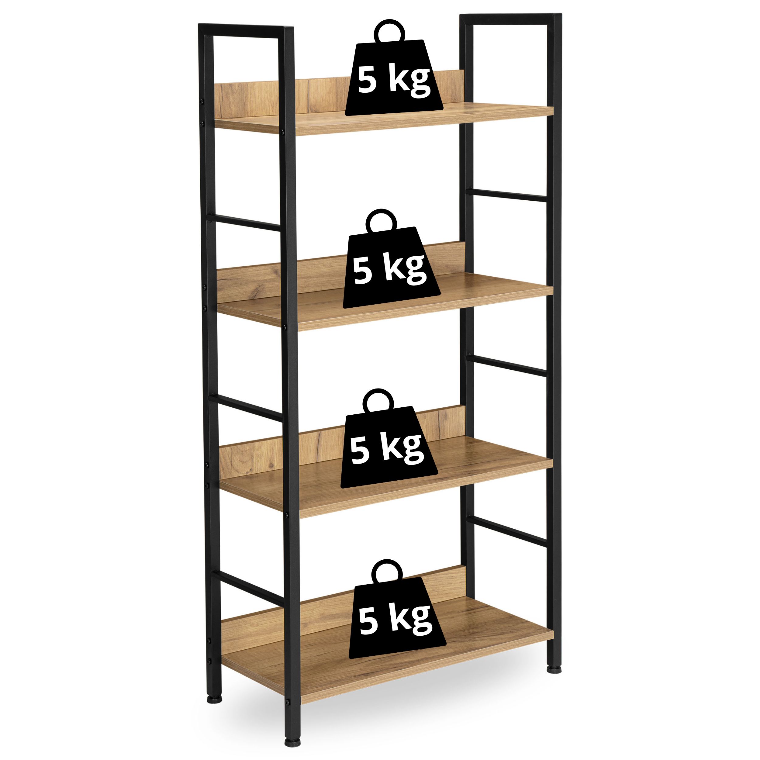Regał loftowy Varberg to idealne połączenie funkcjonalności i stylu. Jego industrialny design w kolorze czarnym i craft pasuje do różnych wnętrz, od loftów po klasyczne aranżacje. Cztery przestronne półki pozwalają na przechowywanie książek, roślin czy dekoracji. Solidna konstrukcja i regulowane nóżki zapewniają trwałość i stabilność, dopasowując się do każdego podłoża.