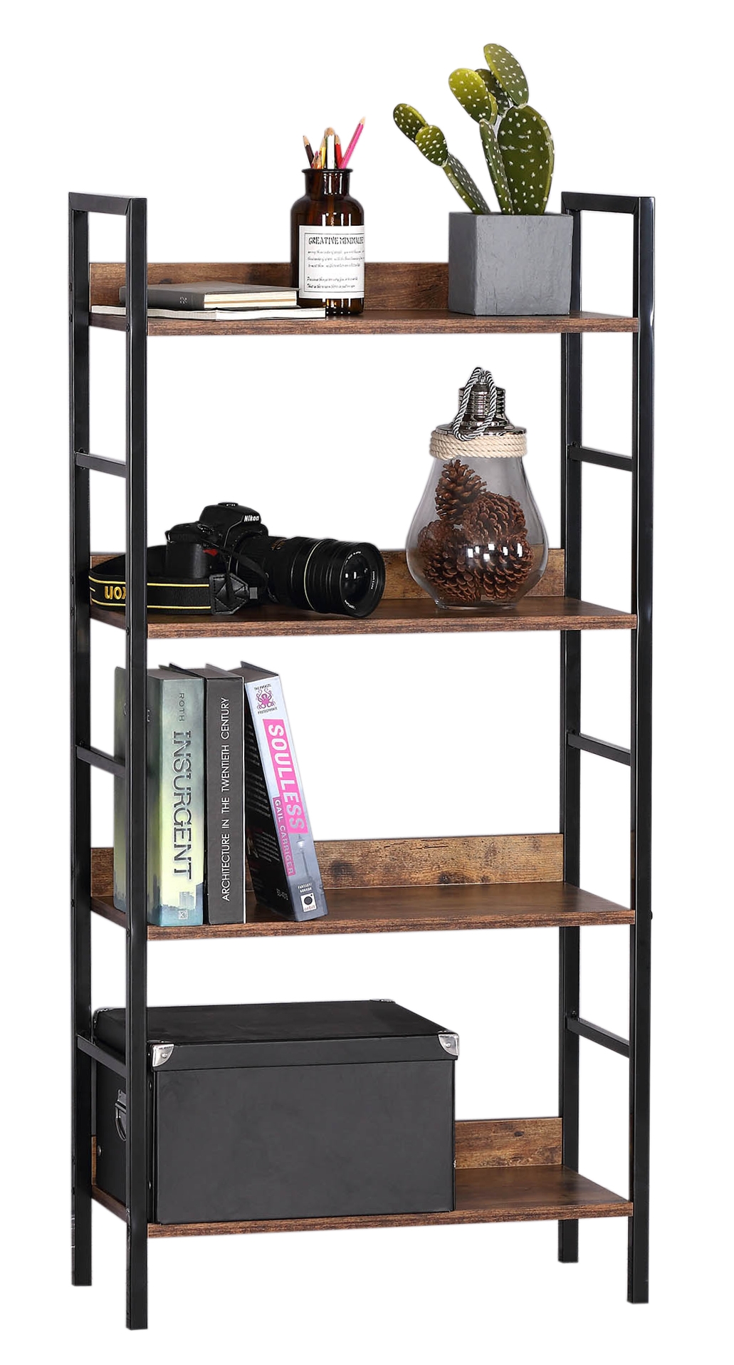 Przemyślane wzornictwo: Cztery półki zapewniają dużą przestrzeń do przechowywania i ekspozycji ulubionych książek, dekoracji czy roślin. Wzornictwo industrialne vintage sprawia, że regał Varberg jest stylowy i nie można przejść obok niego obojętnie.