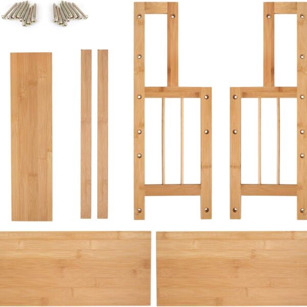 Ten unikalny regał został stworzony z wytrzymałego drewna bambusowego, które dodaje ciepła i naturalnego uroku każdemu wnętrzu.