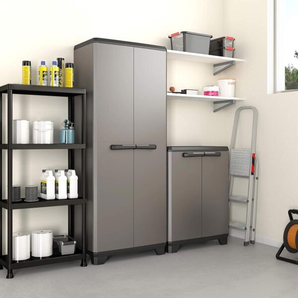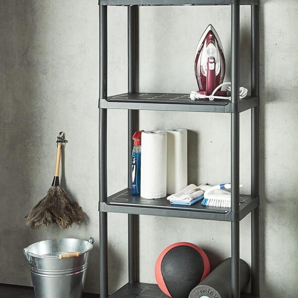 Regał Irving to uniwersalne, praktyczne i solidne rozwiązanie do przechowywania. Wykonany jest z wytrzymałego tworzywa sztucznego. Jego cztery solidne półki, każda wytrzymująca obciążenie do 25 kg, czynią go doskonałym wyborem zarówno do zastosowań profesjonalnych, jak i domowych. Regał ten ma szerokie zastosowanie, doskonale sprawdzi się jako regał magazynowy, oferując wytrzymałość i stabilność potrzebną do przechowywania ciężkich przedmiotów. Idealnie spełni funkcję regału garażowego, jego solidna konstrukcja jest idealna do organizowania narzędzi, akcesoriów i sprzętu. W piwnicy czy spiżarni, regał Irving umożliwia efektywne wykorzystanie przestrzeni, zapewniając łatwy dostęp do przechowywanych przedmiotów. Co więcej, wyróżnia się on prostotą montażu dzięki swojej konstrukcji opartej na systemie wciskanym. Pozwala to na szybki, łatwy i intuicyjny montaż bez konieczności używania narzędzi. Ta cecha sprawia, że jest idealnym rozwiązaniem dla osób ceniących sobie wygodę i efektywność w organizacji przestrzeni. Możliwość błyskawicznego złożenia i rozłożenia regału sprawia, że jest on wyjątkowo praktyczny w różnorodnych warunkach, dostosowując się do potrzeb użytkownika zarówno w domu, jak i w miejscach pracy czy wypoczynku, łącząc w sobie trwałość, funkcjonalność oraz estetykę, co czyni go wszechstronnym rozwiązaniem do przechowywania w każdym otoczeniu.