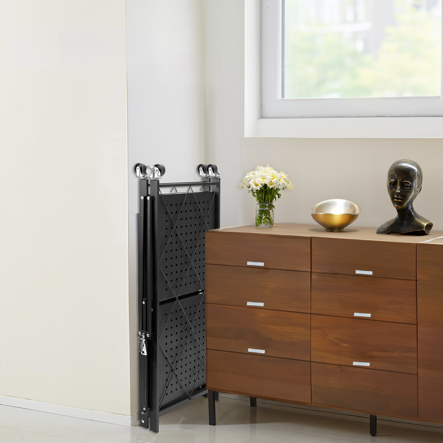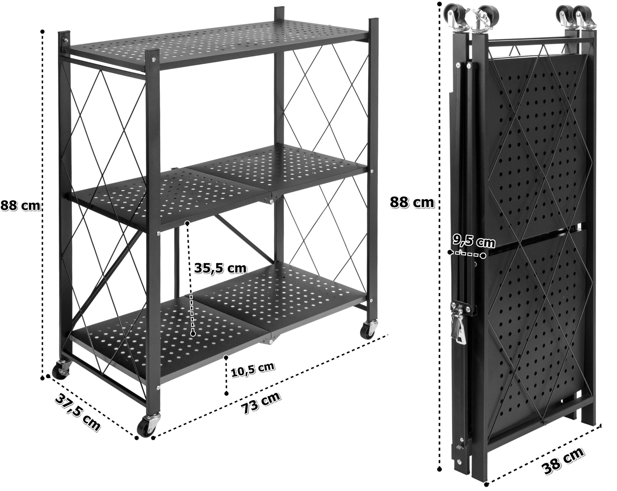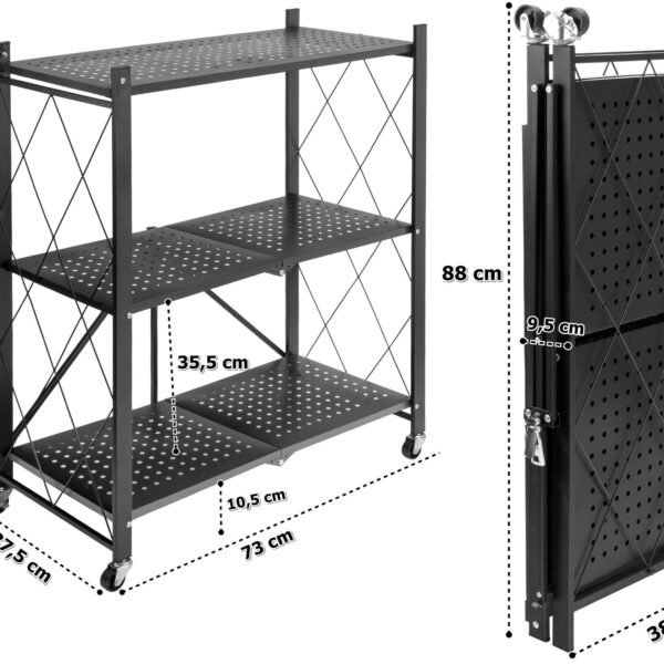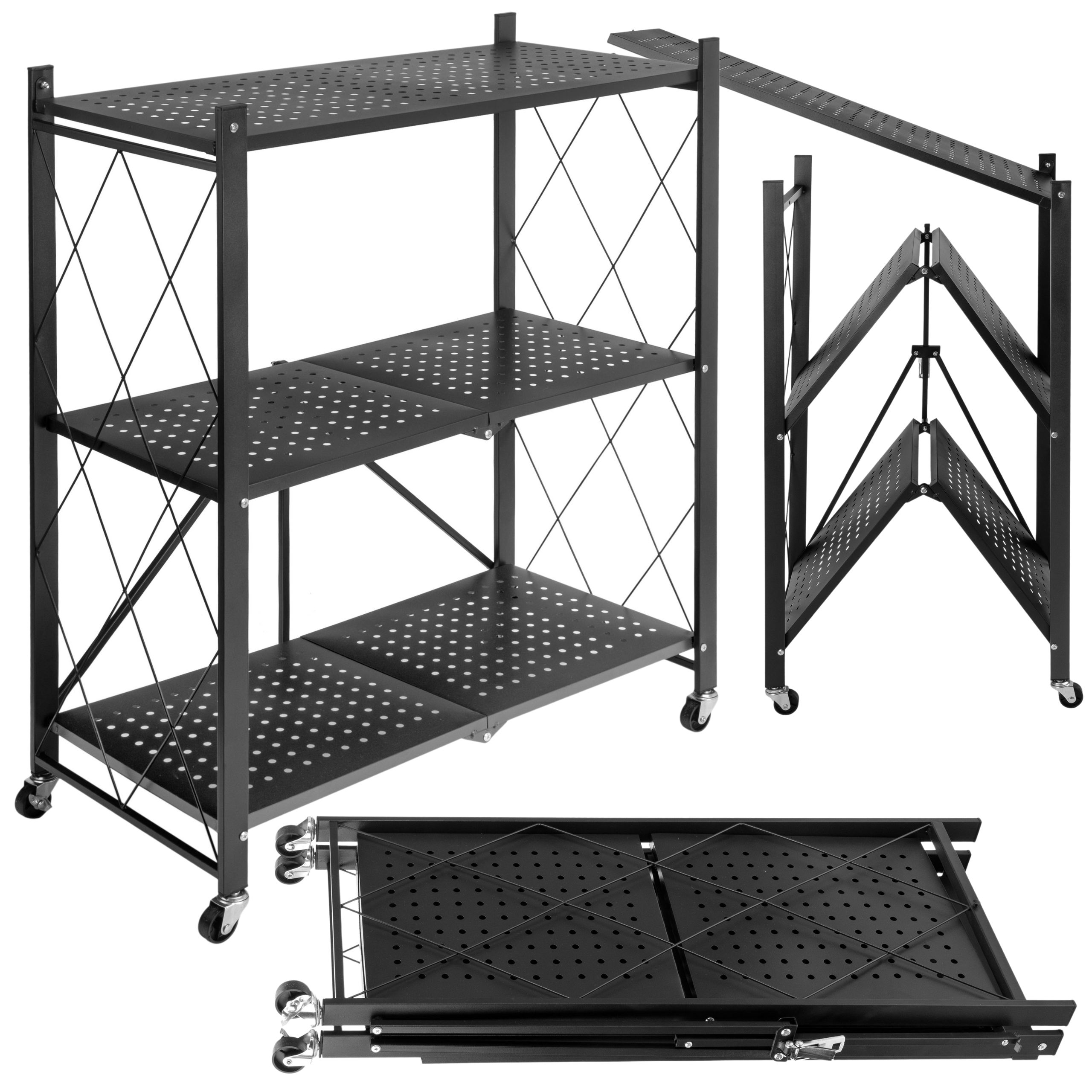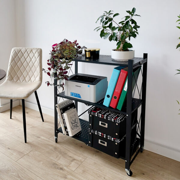 Regał składany GESTEL 3 poziomy czarny na kółkach