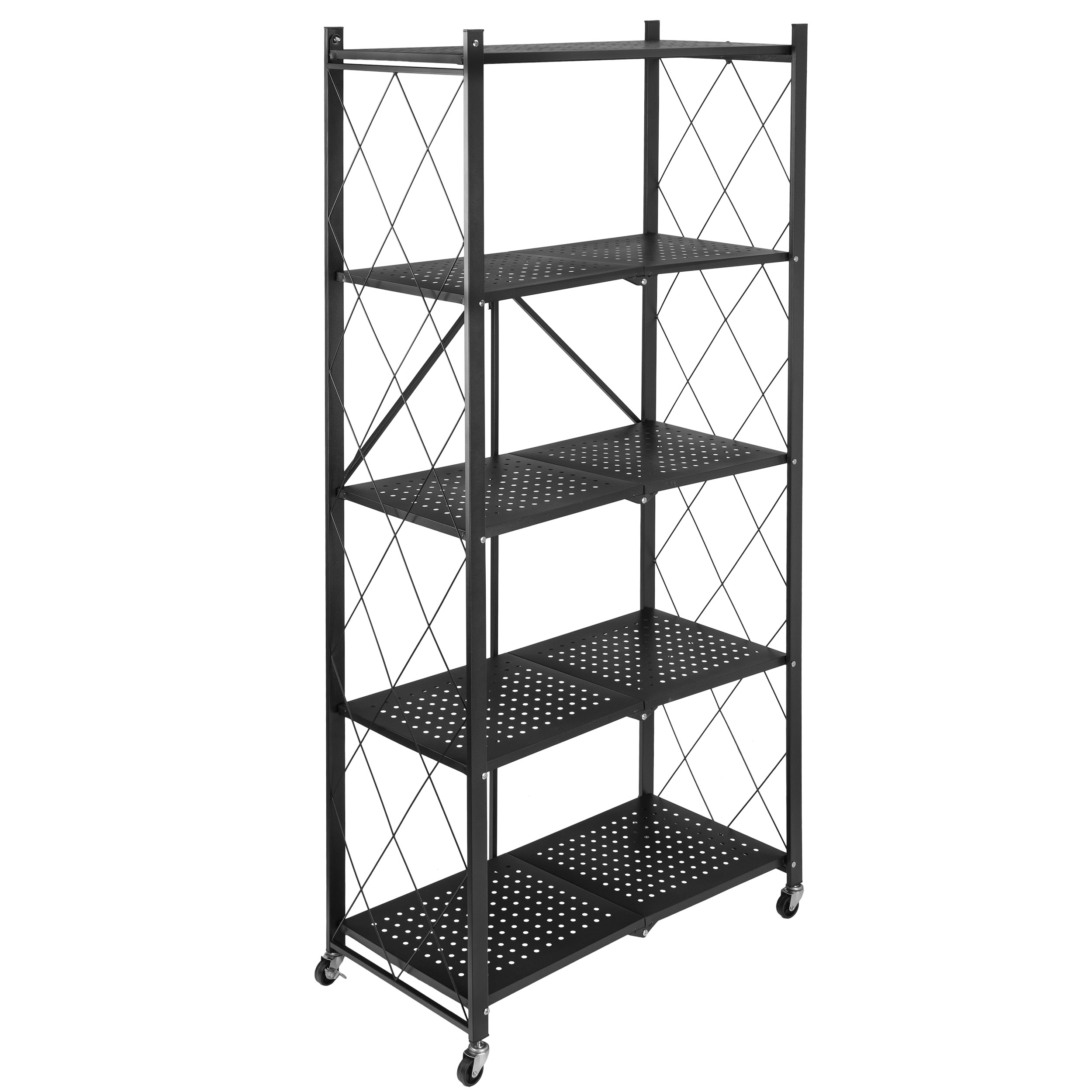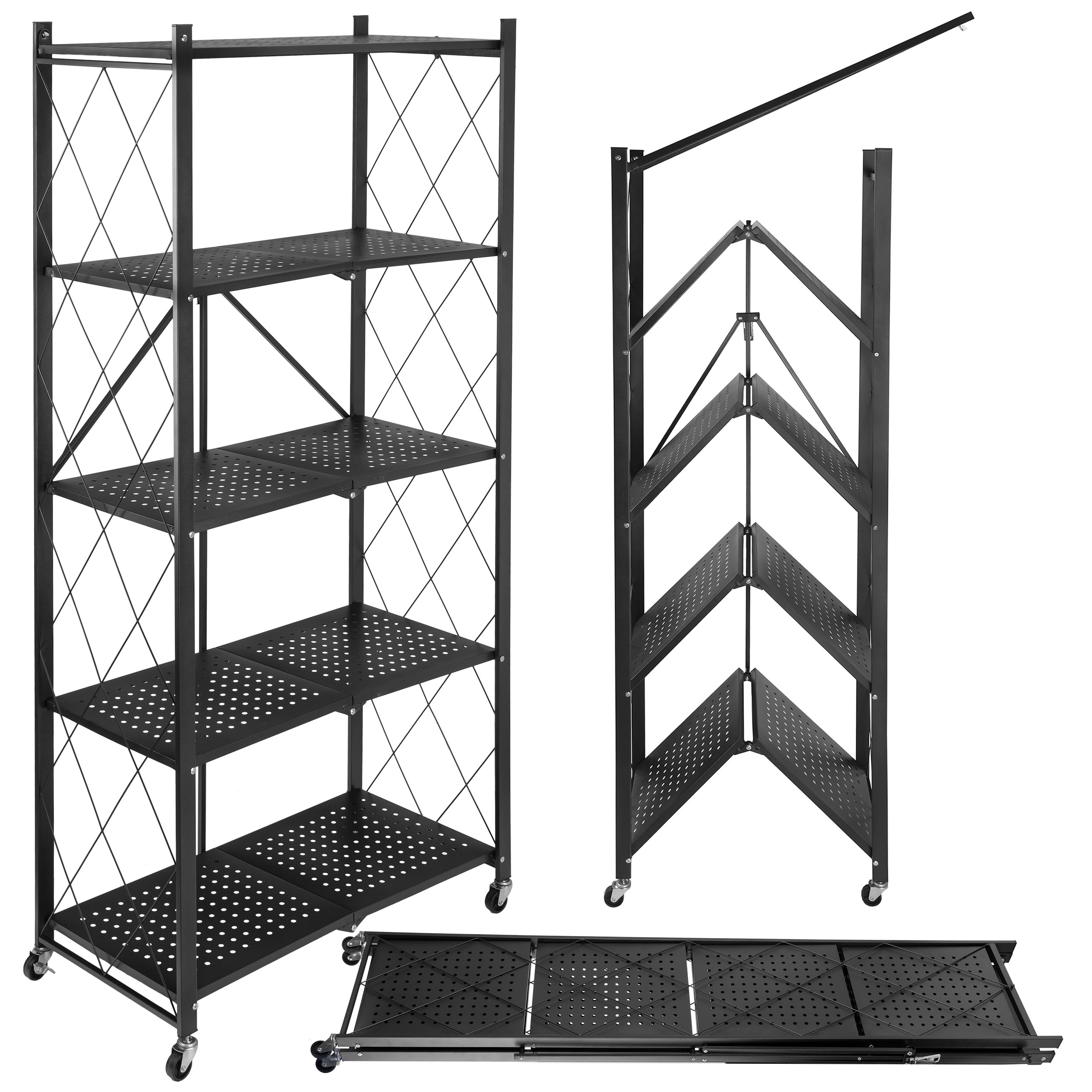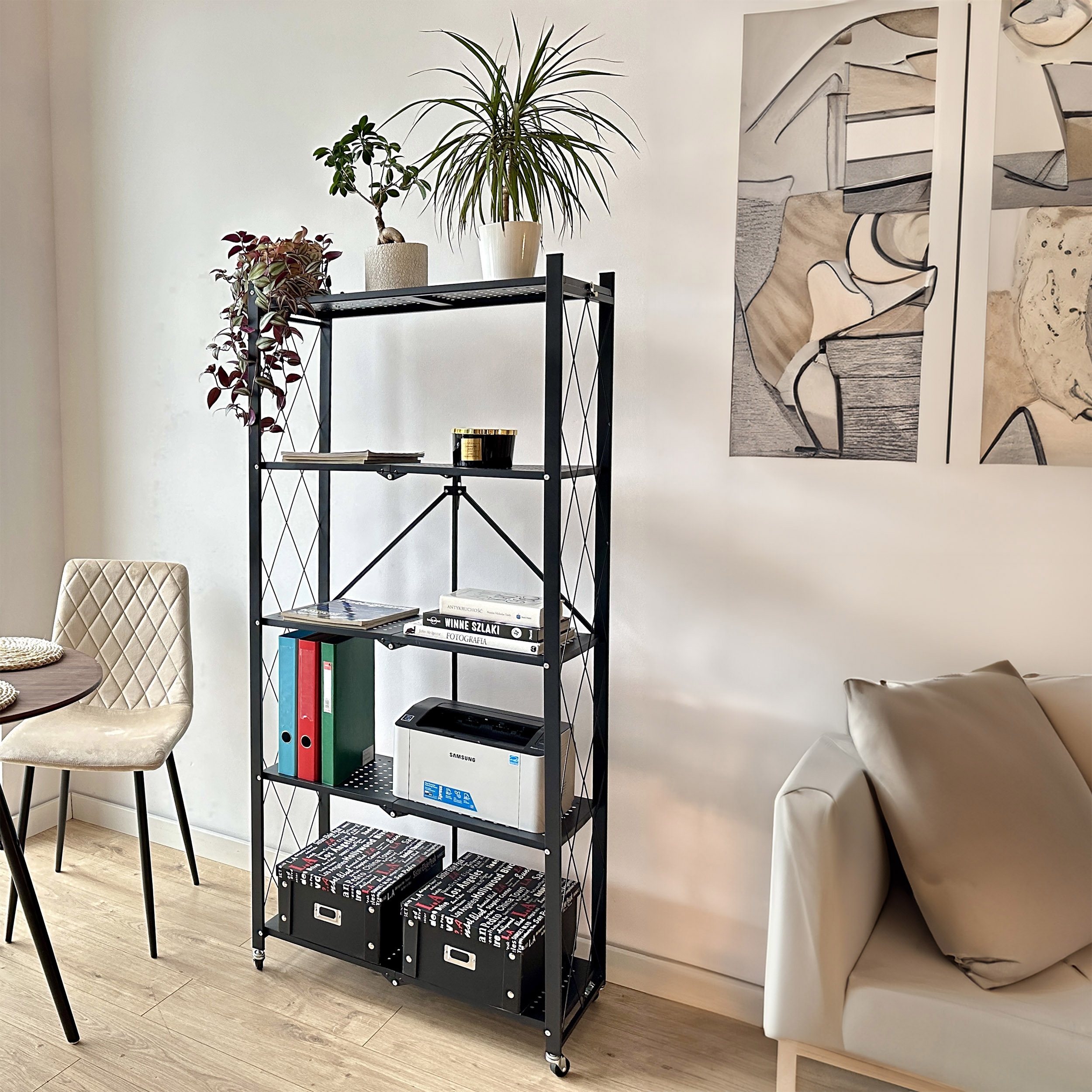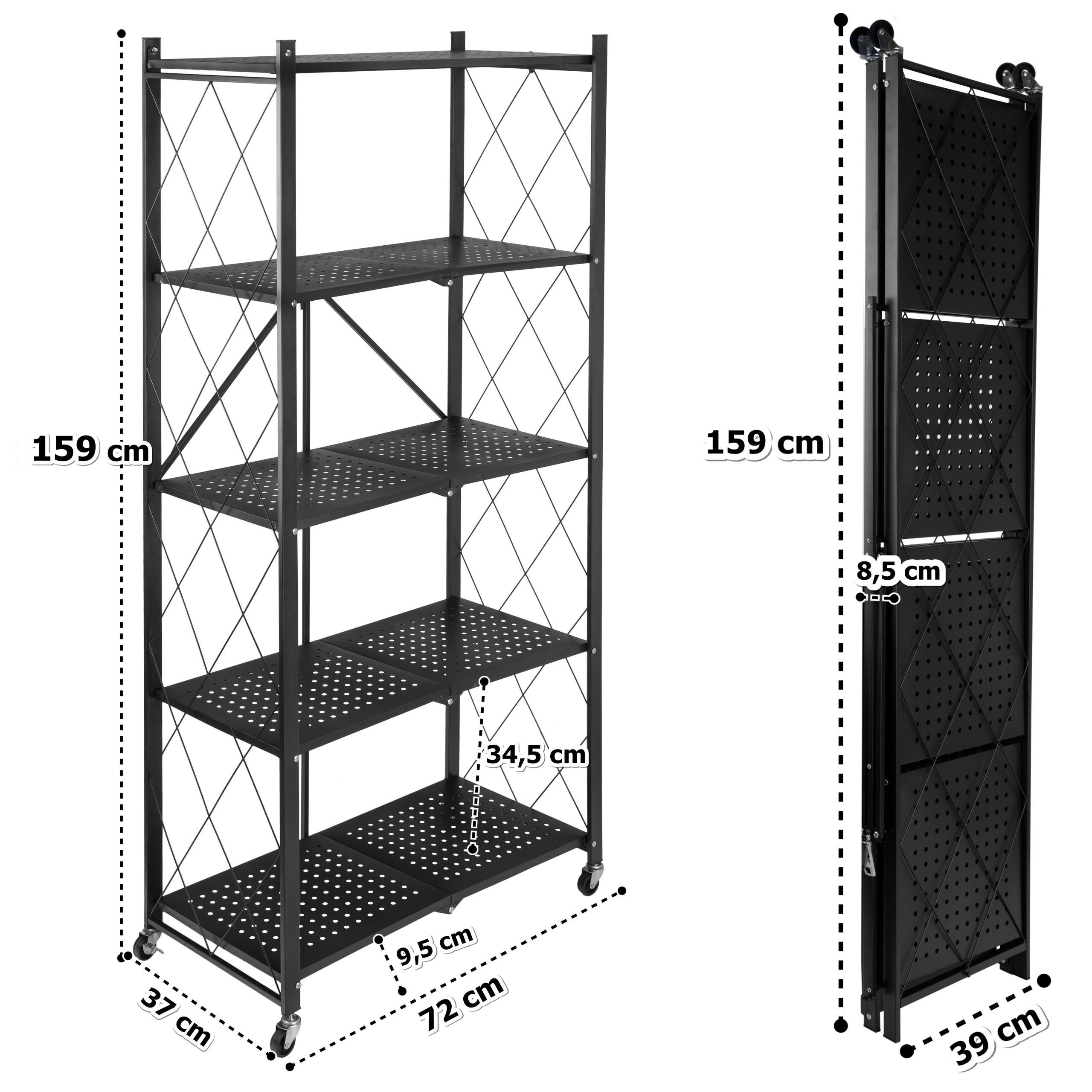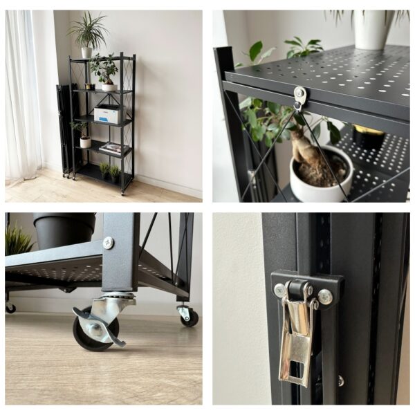 Regał składany GESTEL 5 poziomów czarny na kółkach