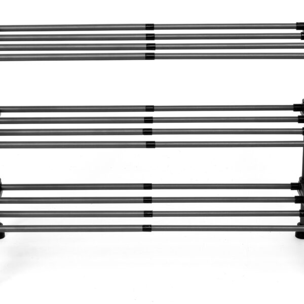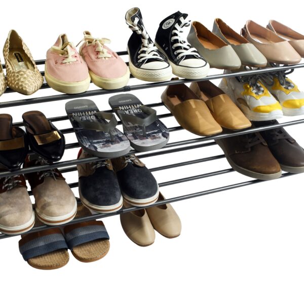 Regał Arisa to regulowany stojak na obuwie, który dzięki teleskopowej regulacji pozwala na zwiększenie szerokości półki w dowolnym momencie. Dzięki temu możesz dopasować półki do ilości butów, które chcesz przechowywać. Nie musisz już martwić się o to, czy regał pomieści wszystkie Twoje buty. Trzy poziomy regału zapewnią przestrzeń dla nawet bardzo dużej ilości butów, a mocna konstrukcja zabezpieczy je przed przewracaniem się.