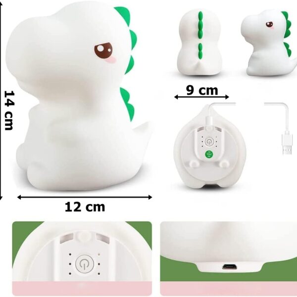 Lampka nocna Dinozaur to niezwykły produkt, który zachwyci wszystkie dzieci, jak i dorosłych. Ta urocza lampa została wykonana z miękkiego i bezpiecznego silikonu, co oznacza, że nie zawiera żadnych toksycznych substancji. Dzięki temu produkt ten jest idealny nawet dla najmłodszych użytkowników, zapewniając im bezpieczny sen i magiczny nastrój. Lampka posiada certyfikaty CE i ROHS. Głównym jej atutem jest uroczy kształt słodkiego dinozaura, który zachwyci każdego miłośnika prehistorii. Jednak to nie wszystko, co ma do zaoferowania. Ta wyjątkowa lampka posiada bogatą paletę kolorów RGB, co oznacza, że możesz dostosować jej oświetlenie do swojego nastroju i preferencji. Wyposażona jest we wbudowany akumulator, który można łatwo naładować za pomocą standardowego kabla USB. Dzięki temu nie musisz martwić się o częste wymiany baterii, a jedno naładowanie wystarczy na wiele godzin magicznego oświetlenia. Dodatkowo antypoślizgowe podkładki zapewniają stabilność lampki, nawet na gładkich powierzchniach. Jej ciepłe, uspokajające światło sprawia, że jest idealna do usypiania dzieci. Wprowadza delikatne i przyjemne oświetlenie, czyniąc otoczenie przyjaznym i niedrażniącym oczu. Warto również podkreślić, że lampka Dinozaur nie tylko doskonale sprawdza się w nocy, ale także w ciągu dnia. Jej uroczy design i różnorodność kolorów czynią ją zapierającą dech w piersiach dekoracją, która doda uroku każdemu wnętrzu. To nie tylko lampa, to również element wystroju, który przyciągnie uwagę i sprawi, że Twoje pomieszczenie stanie się jeszcze bardziej przytulne. W skrócie, lampka nocna Dinozaur to nie tylko źródło światła, ale także źródło uroku, magii, relaksu i stabilności. Dzięki jej miękkiemu materiałowi, szerokiej palecie kolorów, wbudowanemu akumulatorowi, praktycznemu ładowaniu USB i antypoślizgowym podkładkom, jest to produkt, który spełni oczekiwania każdego, kto poszukuje niezwykłego oświetlenia do pokoju dziecięcego. Odkryj magię lampki Dinozaur i wprowadź ją do swojego życia już dziś!