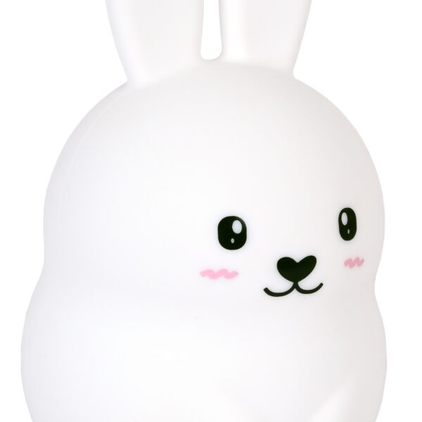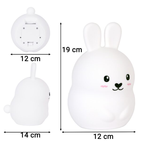 Lampka nocna w kształcie słodkiego królika LED idealnie nadaje się na prezent dla Twojego dziecka. Lampa wykonana z miękkiego i bezpiecznego silikonu, nie zawiera żadnych toksycznych substancji. Dzięki temu produkt nadaje się również dla najmłodszych. Ten uroczy królik posiada 3 tryby pracy, 9 kolorów i 3 timery. Dzięki uspokajającemu, ciepłemu światłu można przy tym bardzo łatwo zasnąć. Lampka nocna led zasilana jest za pomocą x3 baterii AAA lub kabla usb znajdującego się w zestawie. Sterowanie odbywa się za pomocą pilota zdalnego sterowania lub za pomocą stuknięć w lampkę. W nocy służy jako lampka nocna obok łóżka. W ciągu dnia zamienia się w zapierającą dech w piersiach dekorację. „Adoptuj” swojego własnego króliczka, aby cieszyć się jego wielofunkcyjnością.