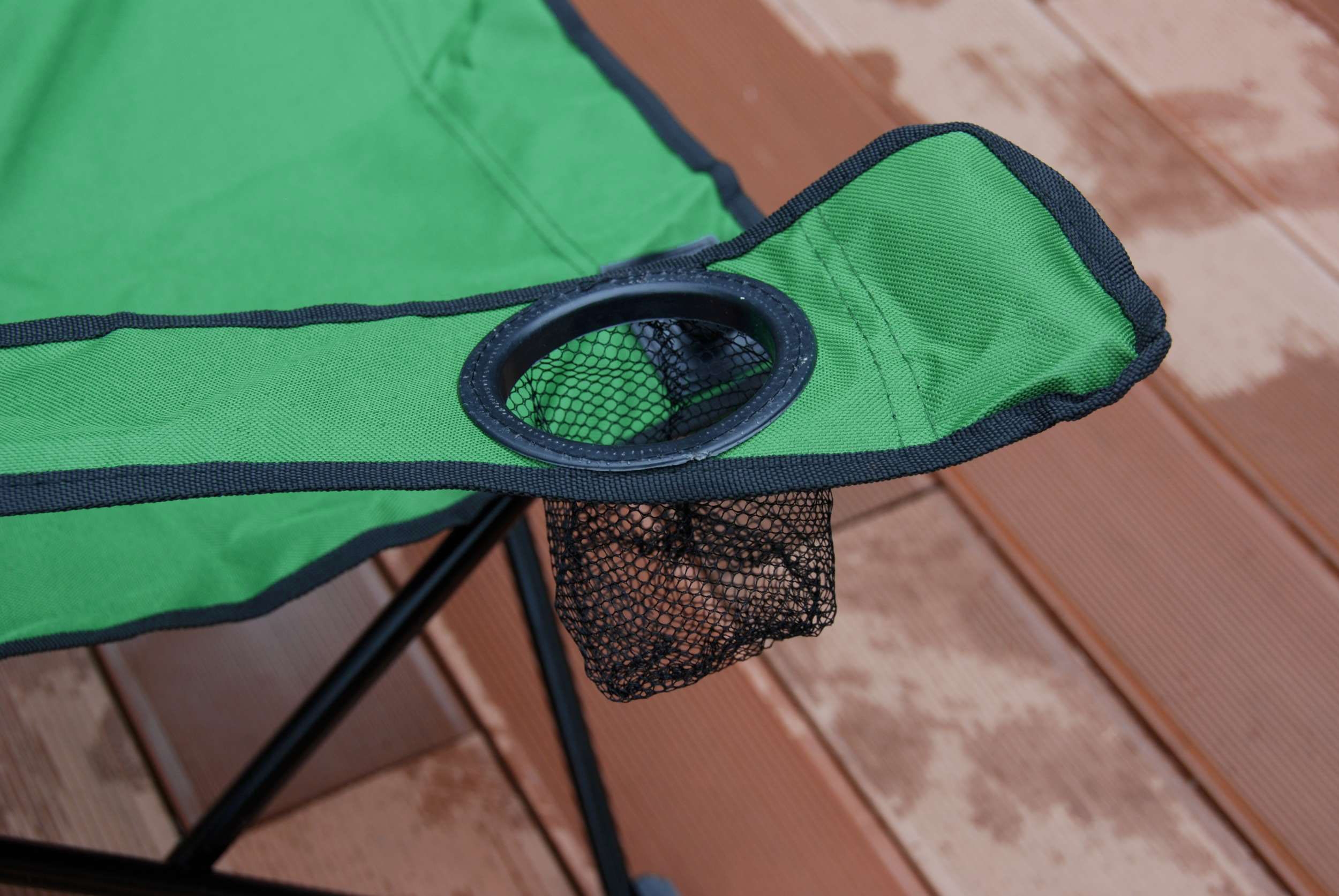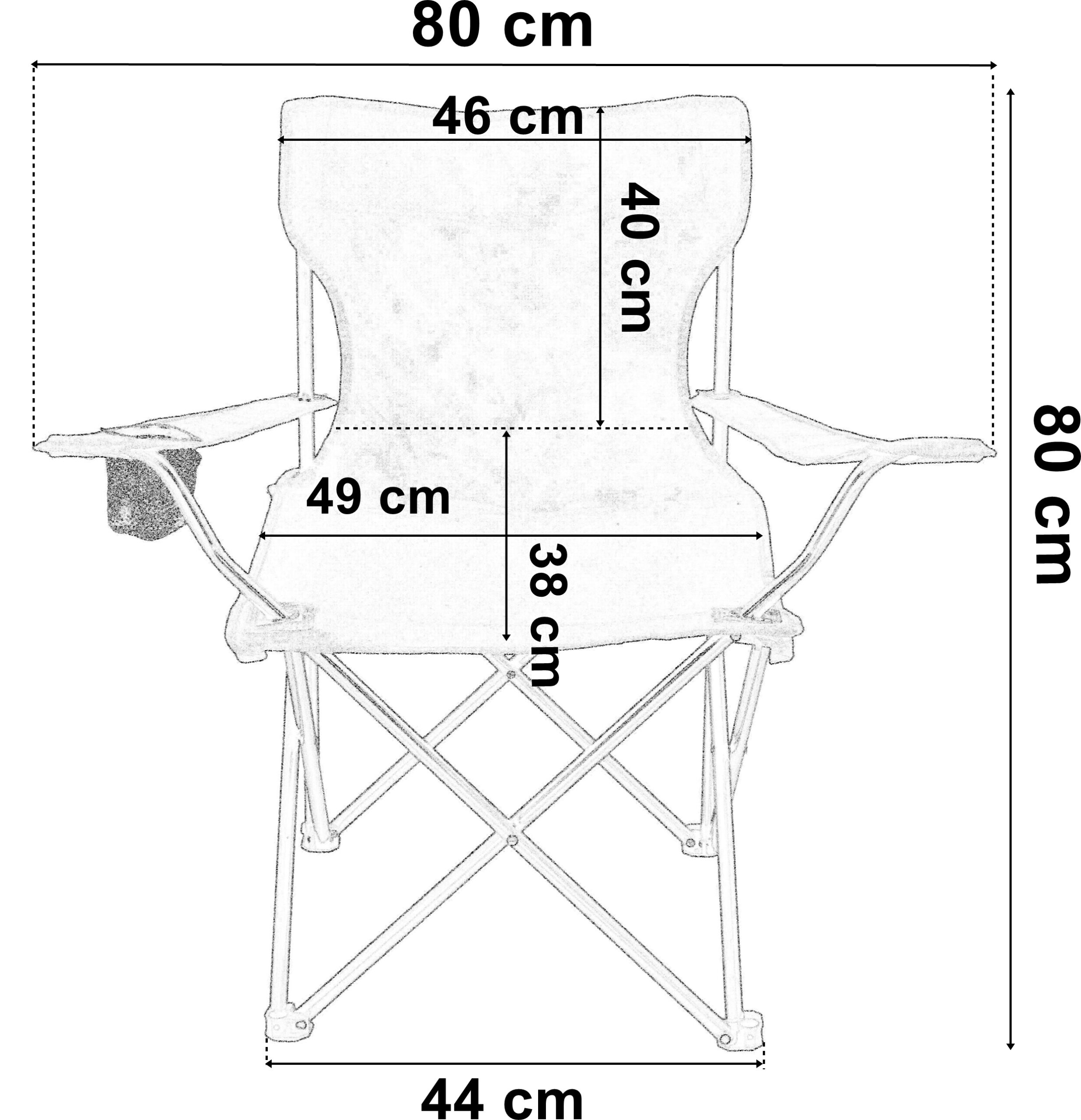 Krzesełko posiada praktyczny pokrowiec z uchwytem, dzięki czemu można je łatwo przenosić w dowolne miejsce. Poręczna kieszonka na kubek, puszkę i inne drobne przedmioty umożliwia łatwy dostęp do nich podczas siedzenia. Podwójne szwy i solidne, metalowe rurki zapewniają wytrzymałość i bezpieczeństwo podczas użytkowania.