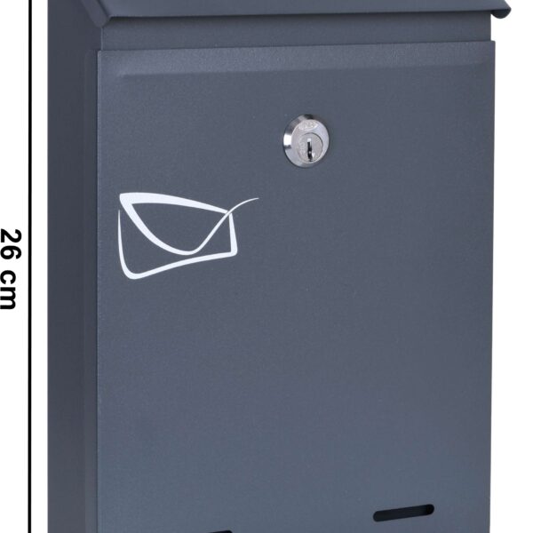 Nowoczesna i funkcjonalna skrzynka pocztowa Odvin antracyt, zaprojektowana z myślą o trwałości i elegancji. Kompaktowe wymiary 26 x 18,5 x 5,5 cm oraz otwór na listy 18 x 2 cm idealnie sprawdzają się w mniejszych przestrzeniach. Wykonana z odpornej na warunki atmosferyczne stali galwanizowanej malowanej proszkowo, nadaje się do montażu na zewnątrz i wewnątrz. Bezpieczna dzięki zamkowi na klucz – zestaw zawiera 2 kluczyki i elementy montażowe. Solidność i styl w jednym!