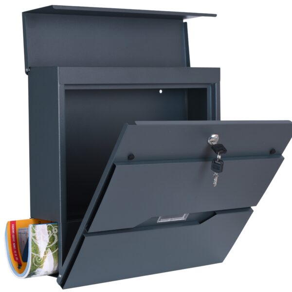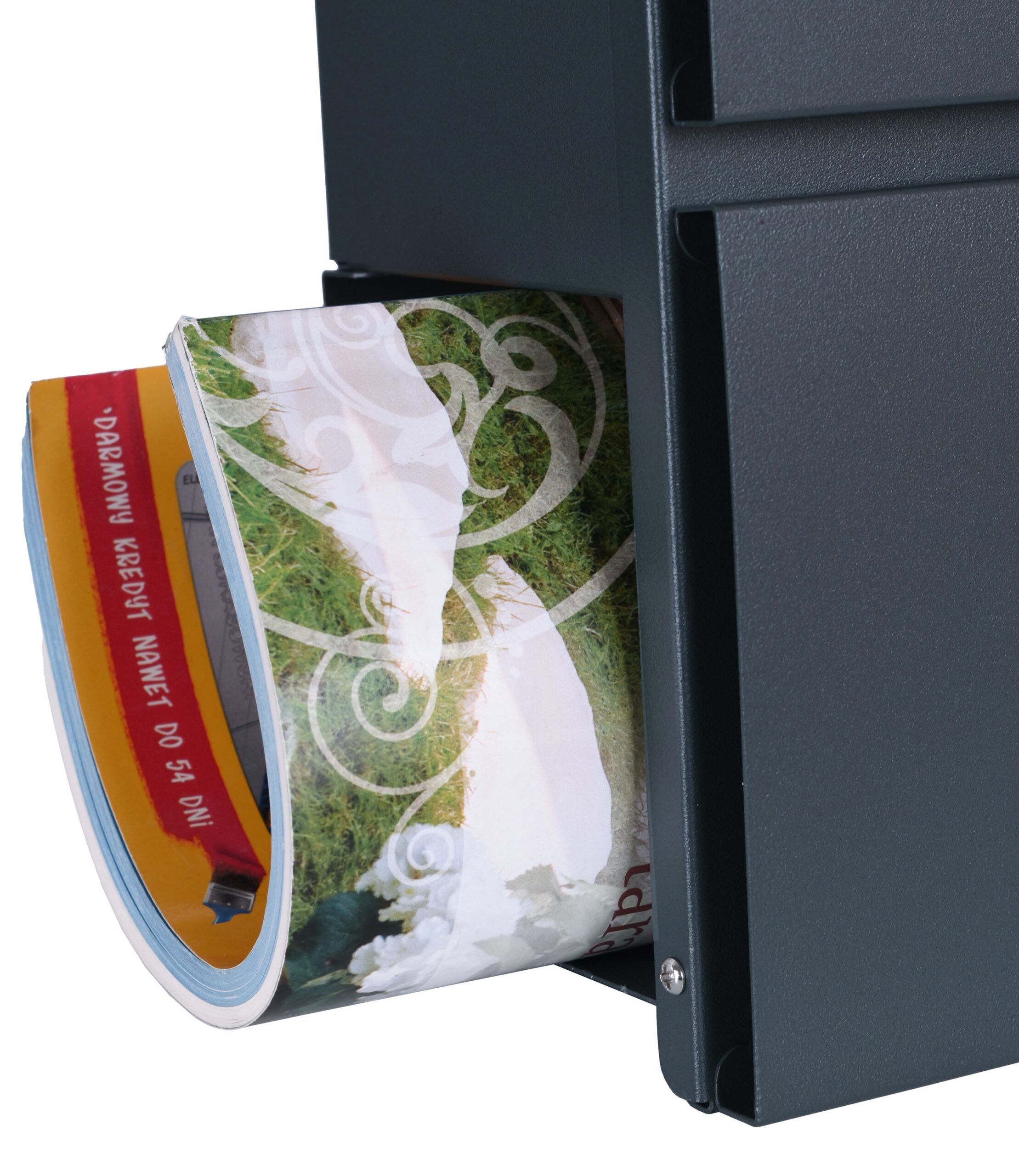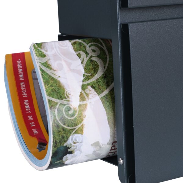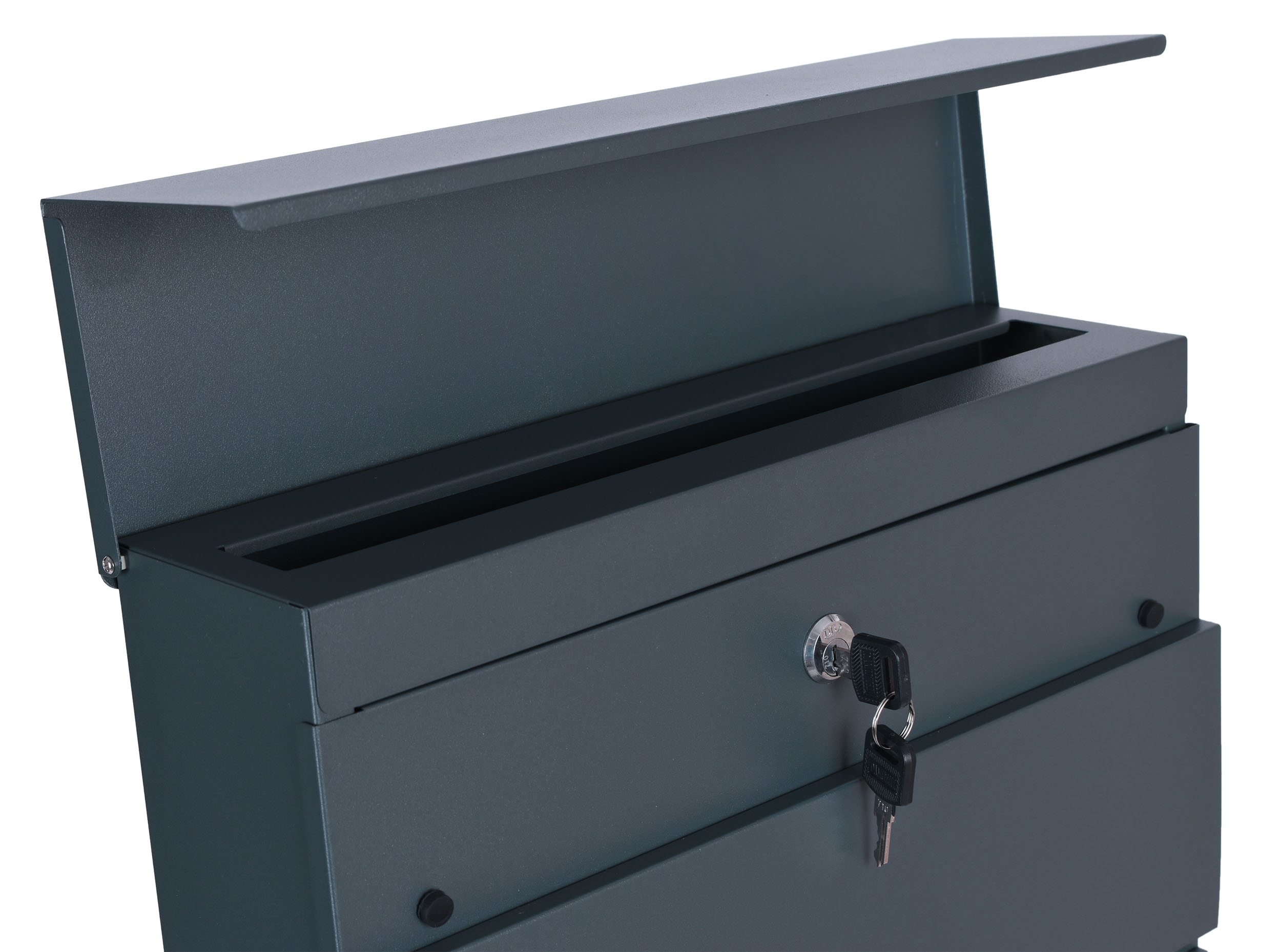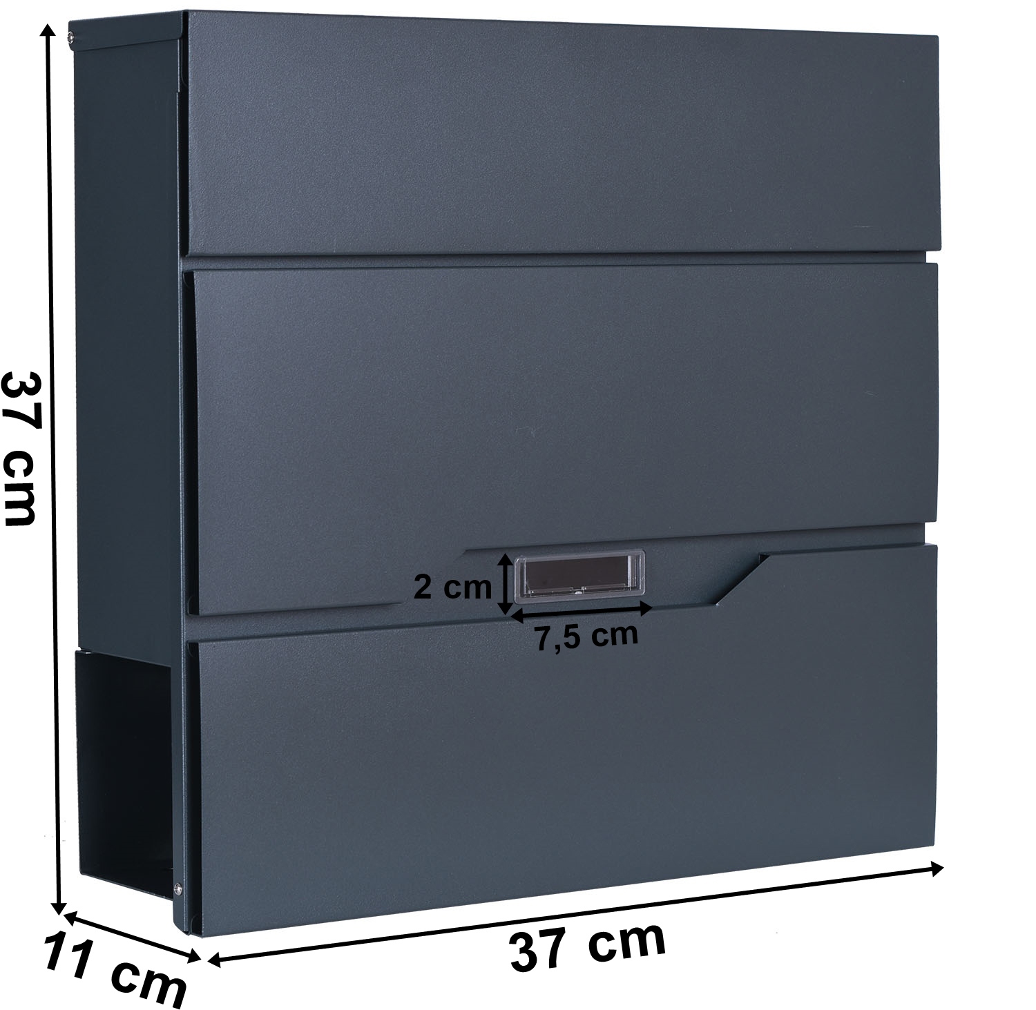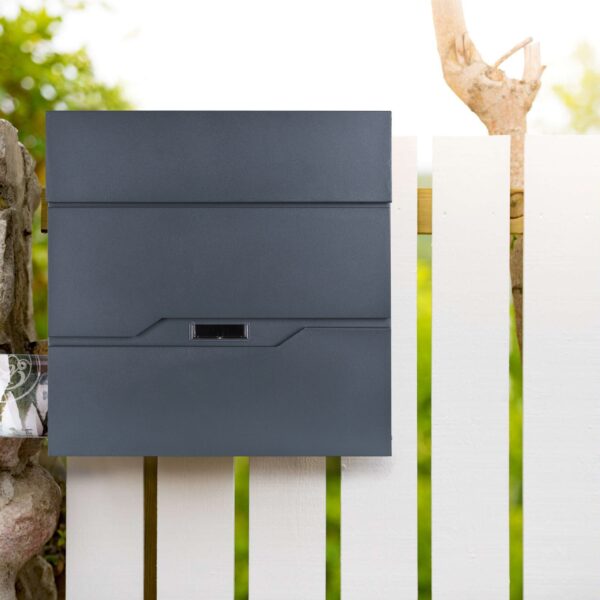 Stylowa i funkcjonalna skrzynka pocztowa, która łączy nowoczesny design z trwałością! Wymiary 37 x 37 x 11 cm, solidna stal galwanizowana malowana proszkowo i odporność na warunki atmosferyczne sprawiają, że idealnie nadaje się na zewnątrz i wewnątrz. Praktyczne okienko adresowe pozwala od razu zauważyć oczekującą korespondencję. Otwór na listy 33 x 3,5 cm, dodatkowe miejsce na gazety i zamknięcie na klucz – skrzynka Vidar to bezpieczeństwo i wygoda!