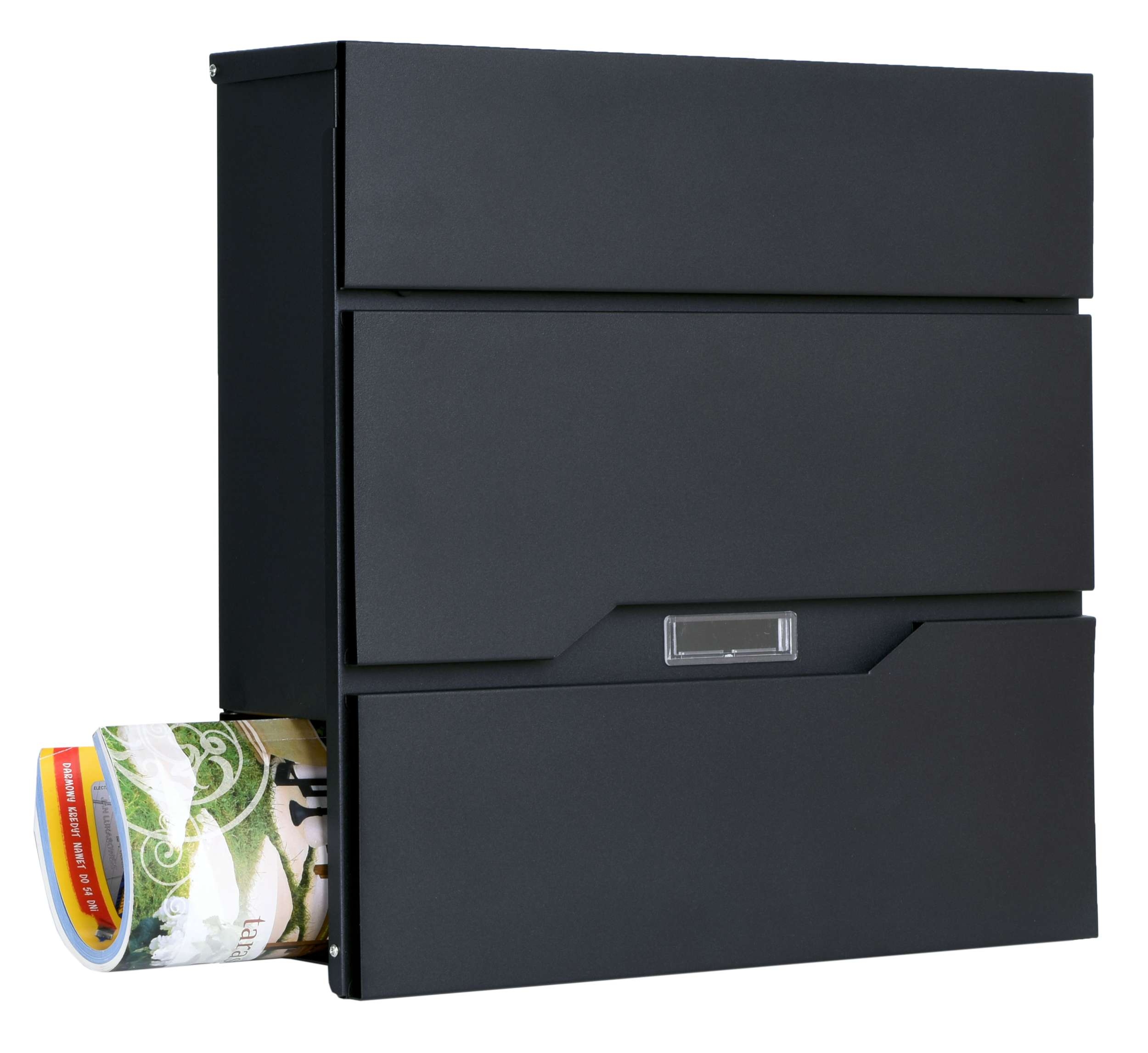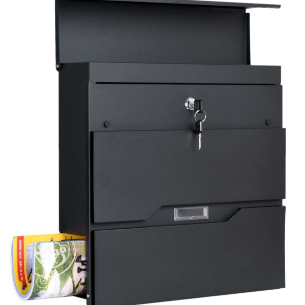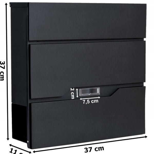 Stylowa i funkcjonalna skrzynka pocztowa, która łączy nowoczesny design z trwałością! Wymiary 37 x 37 x 11 cm, solidna stal galwanizowana malowana proszkowo i odporność na warunki atmosferyczne sprawiają, że idealnie nadaje się na zewnątrz i wewnątrz. Praktyczne okienko adresowe pozwala od razu zauważyć oczekującą korespondencję. Otwór na listy 33 x 3,5 cm, dodatkowe miejsce na gazety i zamknięcie na klucz – skrzynka Vidar to bezpieczeństwo i wygoda!