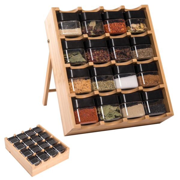 ✅Kompletny Zestaw: W zestawie znajdziesz 16 eleganckich pojemników na przyprawy, które idealnie komponują się ze stojakiem.