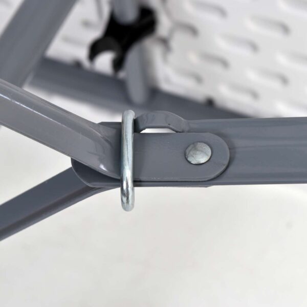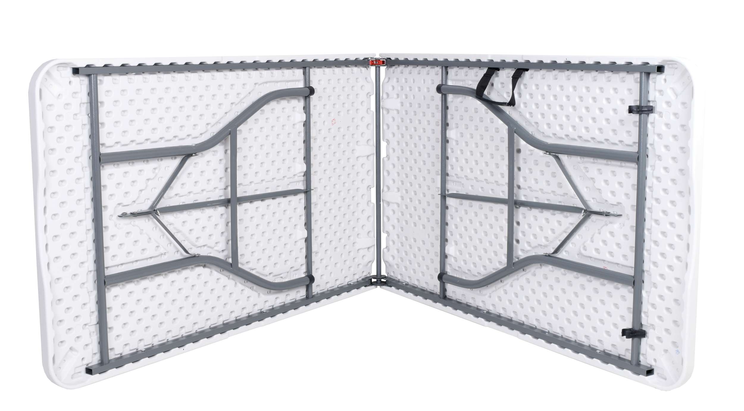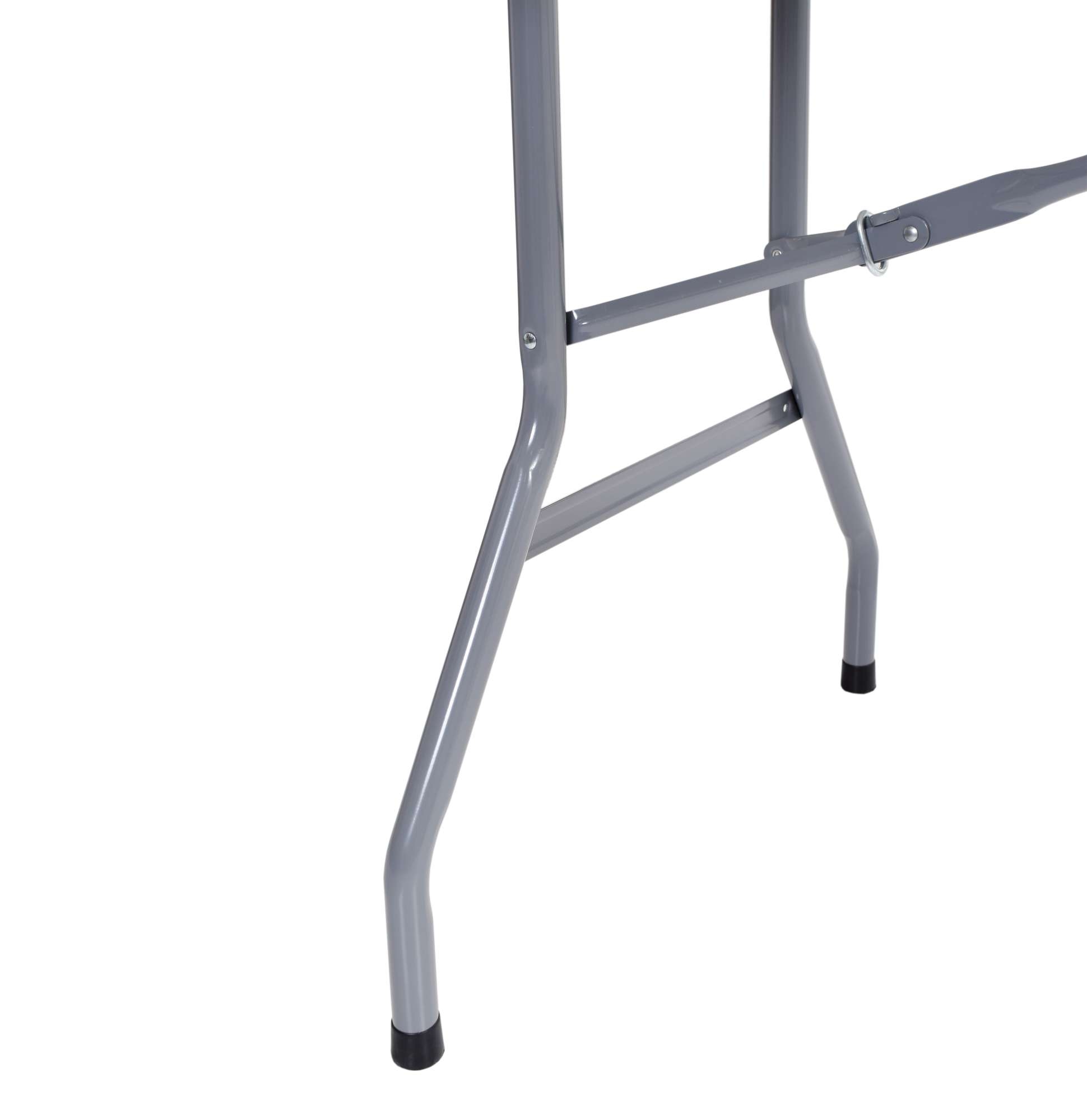 Bardzo praktyczny i lekki stół cateringowy. Konstrukcja wykonana z metalu malowanego proszkowo. Blat wykonany z mocnego tworzywa sztucznego. Stolik po złożeniu tworzy praktyczną walizkę dzięki czemu zajmuje małą przestrzeń i jest łatwy do przeniesienia. Doskonale sprawdzi się na kempingu. Dzięki unikalnemu projektowi całość konstrukcji chowa się w blat stołu, tworząc ergonomiczną walizkę. Najwyższej jakości tworzywo użyte do produkcji blatu czyni go najmocniejszym z oferowanych na polskim rynku.