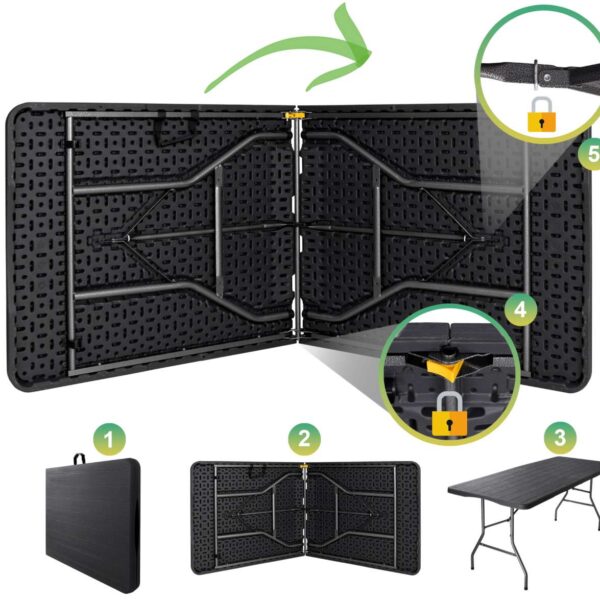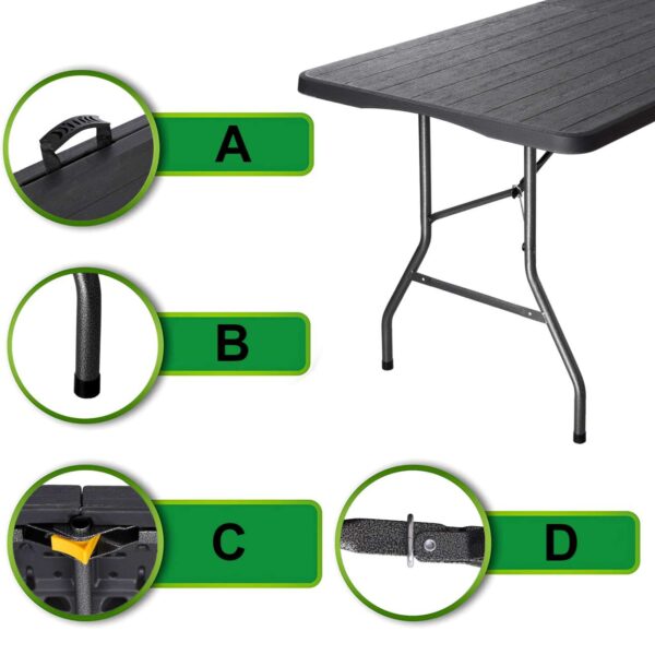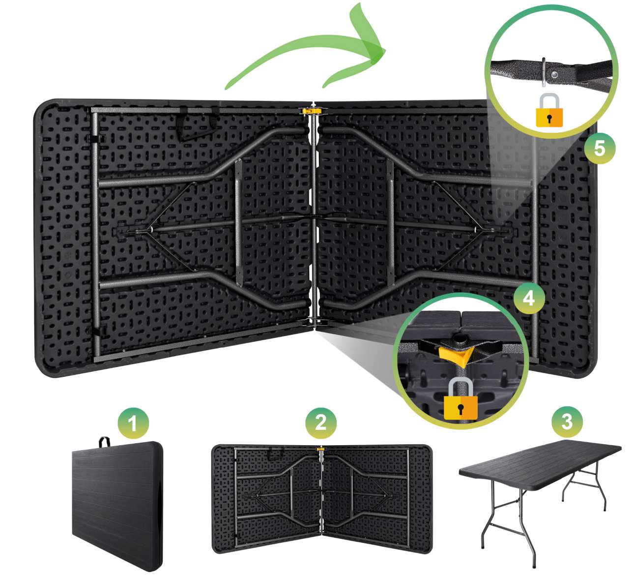 Bardzo praktyczny i lekki stół cateringowy. Konstrukcja wykonana ze stali. Blat wykonany z mocnego tworzywa sztucznego. Stolik po złożeniu tworzy praktyczną walizkę dzięki czemu zajmuje małą przestrzeń i jest łatwy do przeniesienia. Doskonale sprawdzi się na kempingu. Dzięki unikalnemu projektowi całość konstrukcji chowa się w blat stołu. Bardzo łatwy w transporcie. Najwyższej jakości mocne tworzywo użyte do produkcji blatu czyni go najmocniejszym i najgrubszym z oferowanych na polskim rynku.