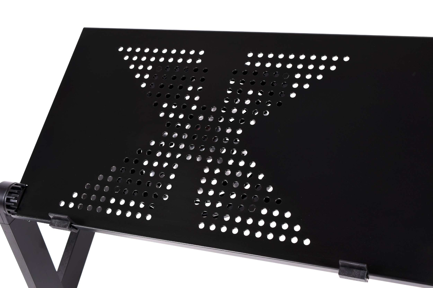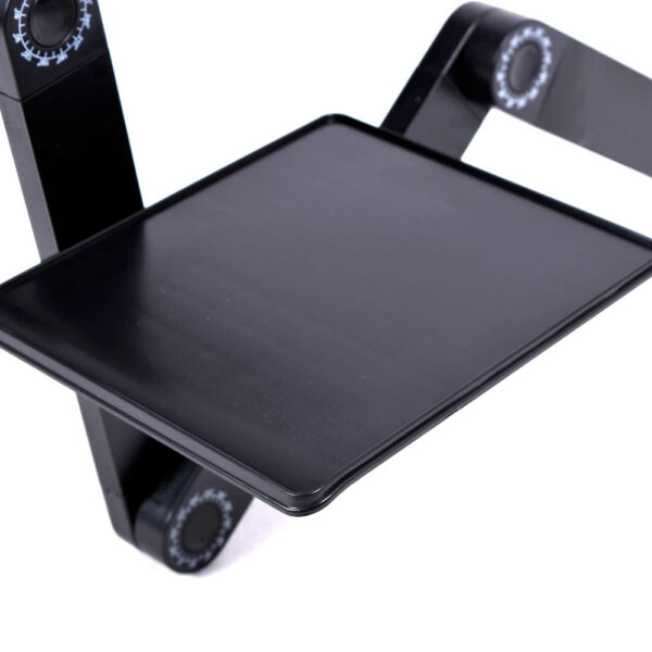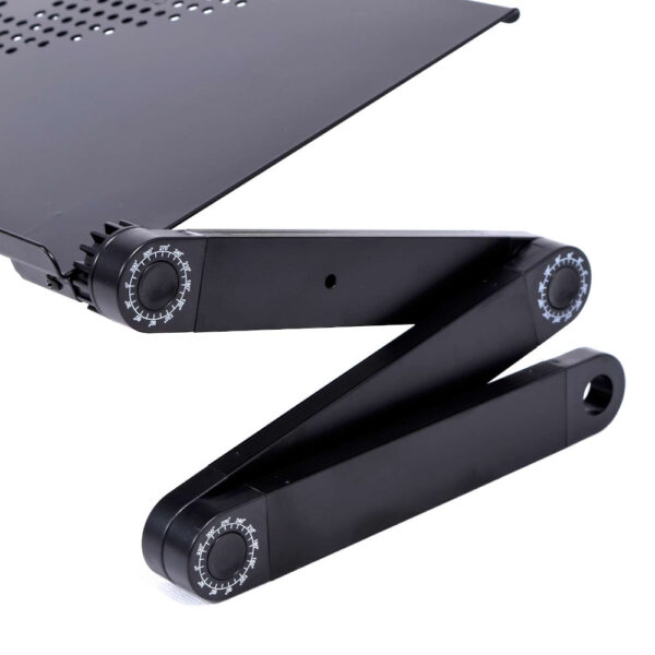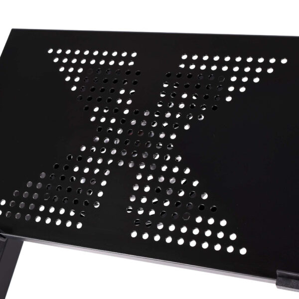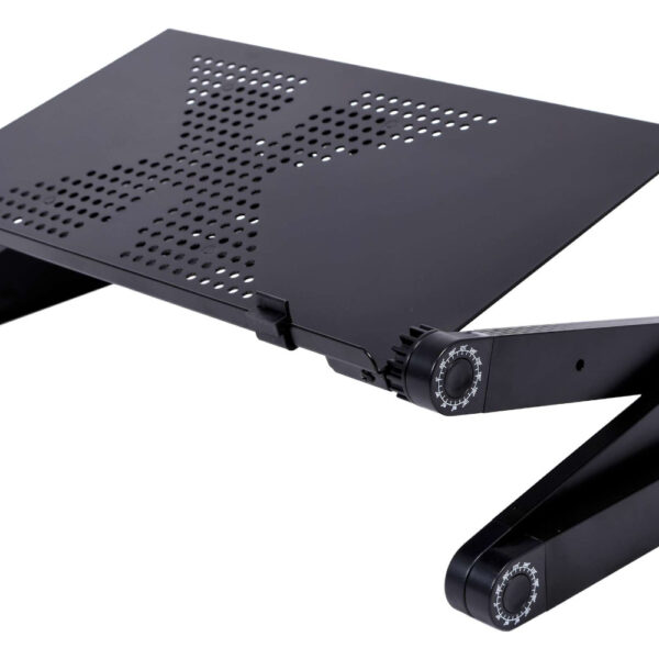 Stolik pod laptopa w kolorze czarnym. Charakteryzuje się lekką i solidną konstrukcją z aluminium. Zapewnia komfort korzystania z laptopa w łóżku i fotelu.