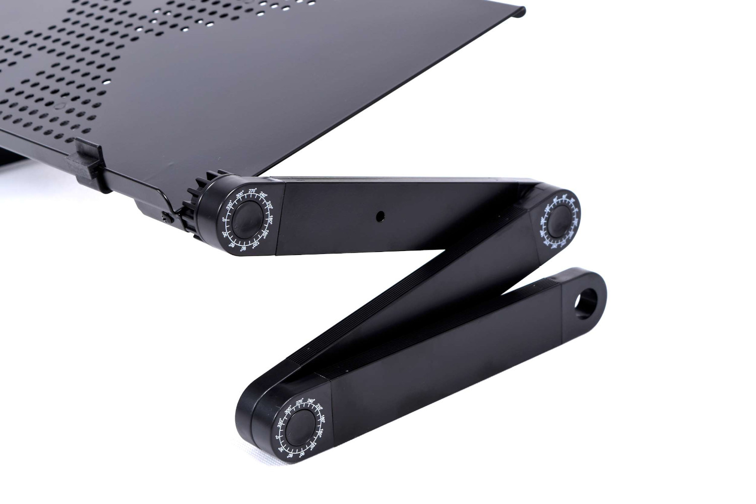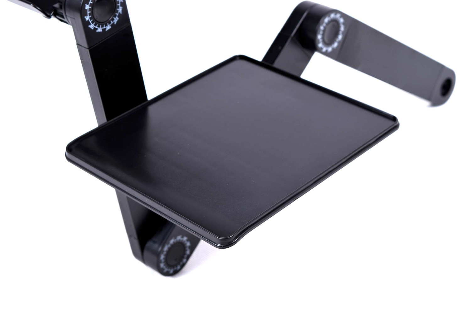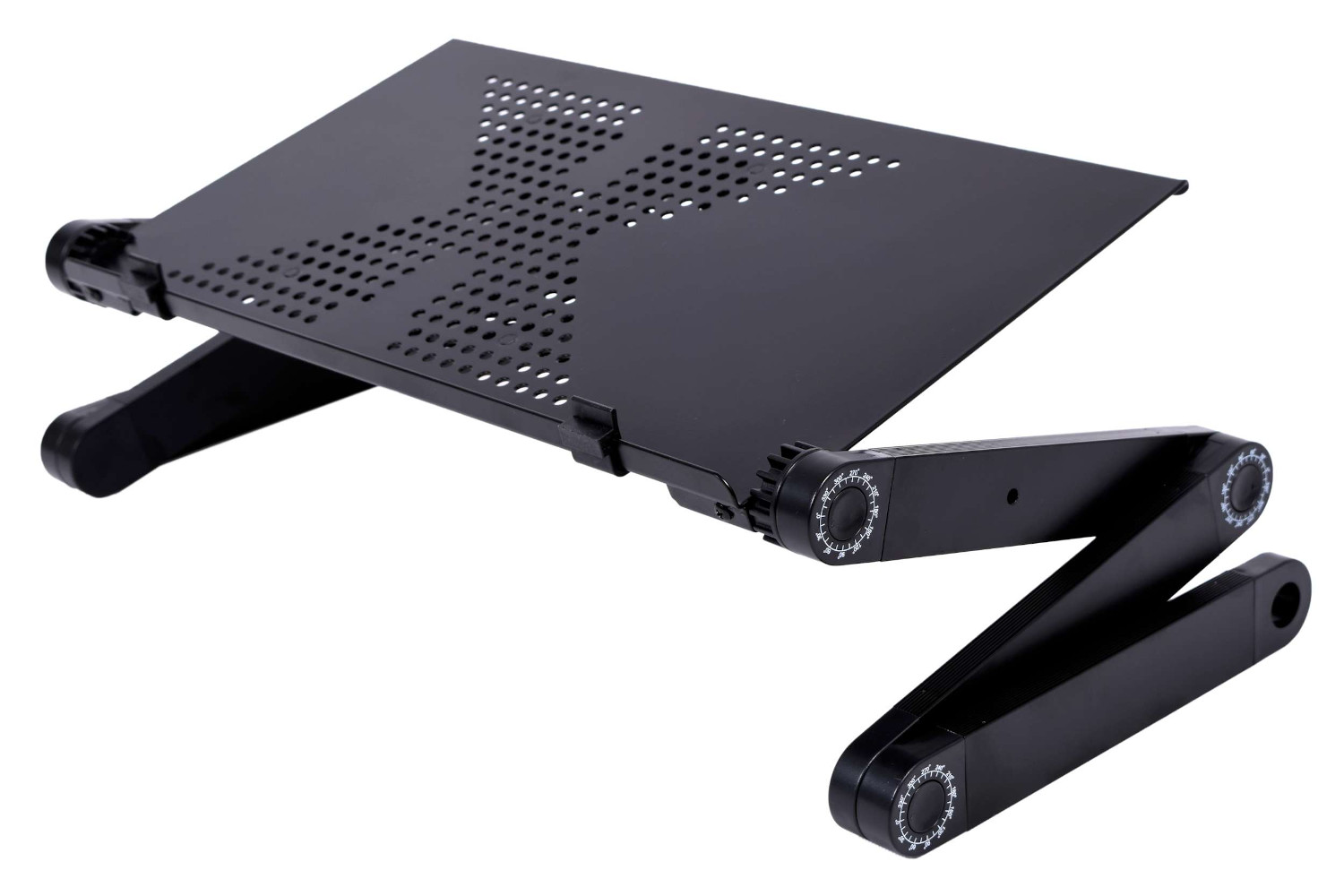 Stolik pod laptopa w kolorze czarnym. Charakteryzuje się lekką i solidną konstrukcją z aluminium. Zapewnia komfort korzystania z laptopa w łóżku i fotelu.