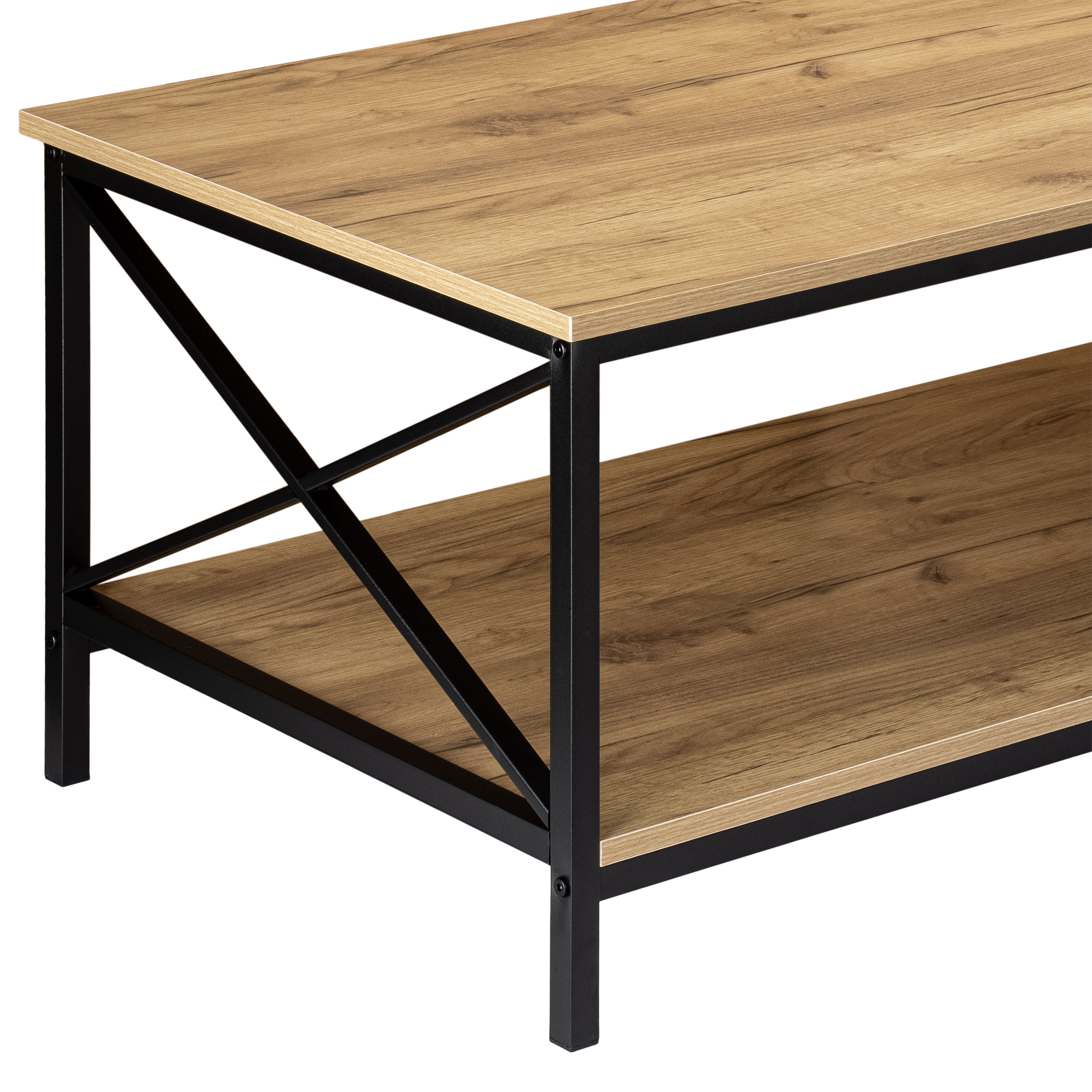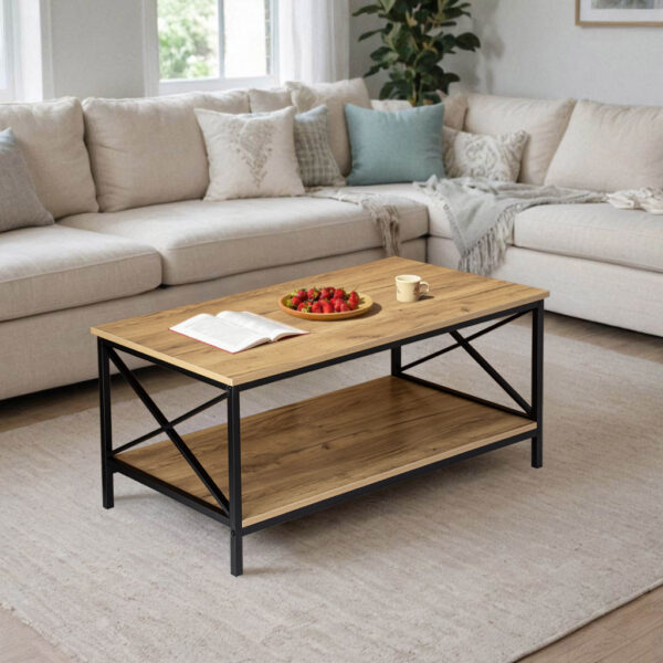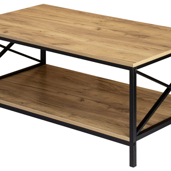 Herning to świetny przykład mebla praktycznego i wyróżniającego się wyjątkowym designem. Solidna konstrukcja ze stali malowanej proszkowo i laminowana płyta w kolorze craft świetnie się łączą, tworząc ławę kawową o nowoczesnym wzornictwie. Model doskonale sprawdzi się jako stolik kawowy w oryginalnie urządzonych salonach. Idealnie pasuje do stylu loftowego, industrialnego i vintage. Herning został wykonany z materiałów najwyższej jakości z zachowaniem dbałości o najmniejsze szczegóły. Model wyróżnia się atrakcyjnym designem, dużą powierzchnią blatu i solidnym wykonaniem. Przestronny blat zapewnia wystarczająco dużo miejsca na np: filiżanki do kawy, laptopa, ulubioną książkę czy tacę z przekąskami. Dolna półka równie obszerna, może służyć do przechowywania reszty najpotrzebniejszych akcesoriów.
