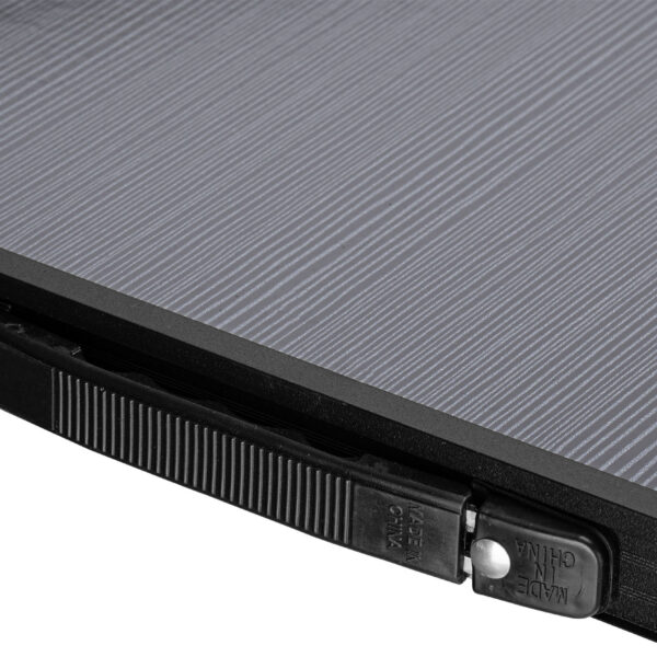 Turystyczny stolik kempingowy TRIP rozkłada i składa się wygodnie do postaci walizki. W transporcie pomaga wygodna rączka. Stolik posiada regulowaną wysokość, blat można ustawić na trzech wysokościach. Stelaż TRIP wykonano z wysokiej jakości aluminium, dzięki czemu jest bardzo lekki. Blat powstał z trwałej płyty MDF. Takie połączenie materiałów zapewnia niską wagę, dzięki czemu transportowanie stolika jest bezproblemowe. Stolik wyposażony został w rączkę, która umożliwia wygodne przenoszenie.