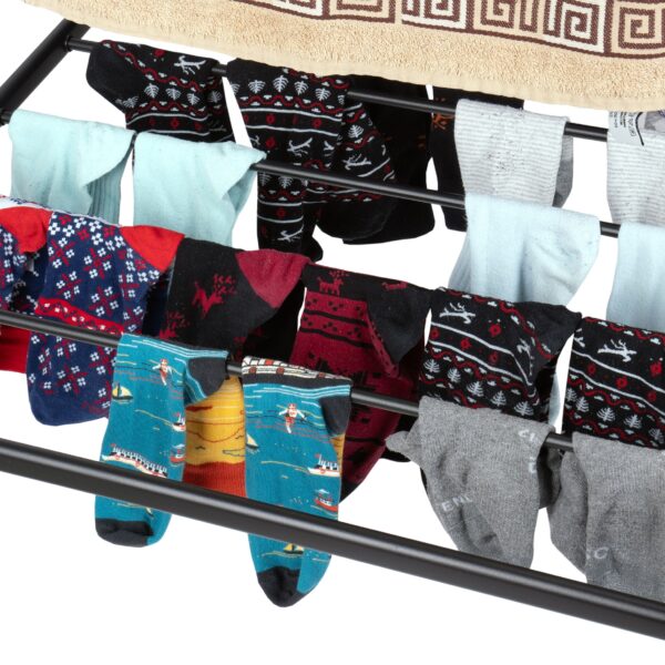 Stalowe rurki malowane proszkowo gwarantują trwałość, co czyni suszarkę idealną do długotrwałego użytkowania.