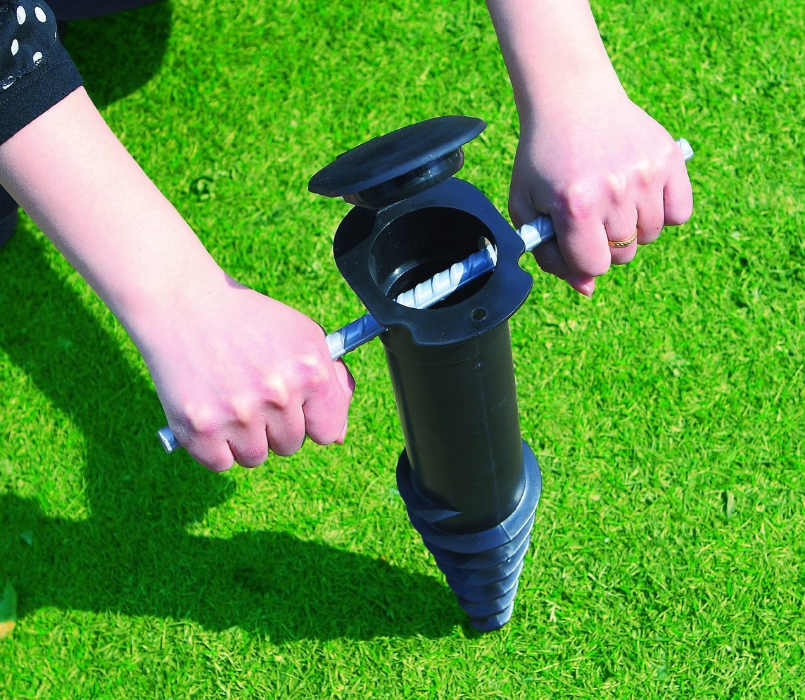 Do zestawu dołączone są wszystkie niezbędne narzędzia, co pozwala na szybkie i bezproblemowe wkręcenie suszarki w ziemię, bez potrzeby betonowania.