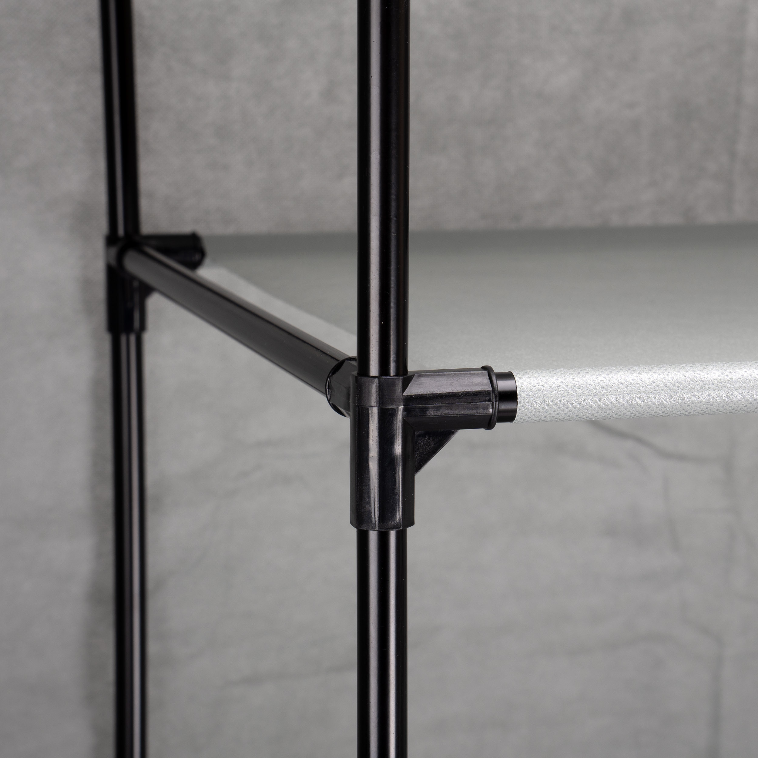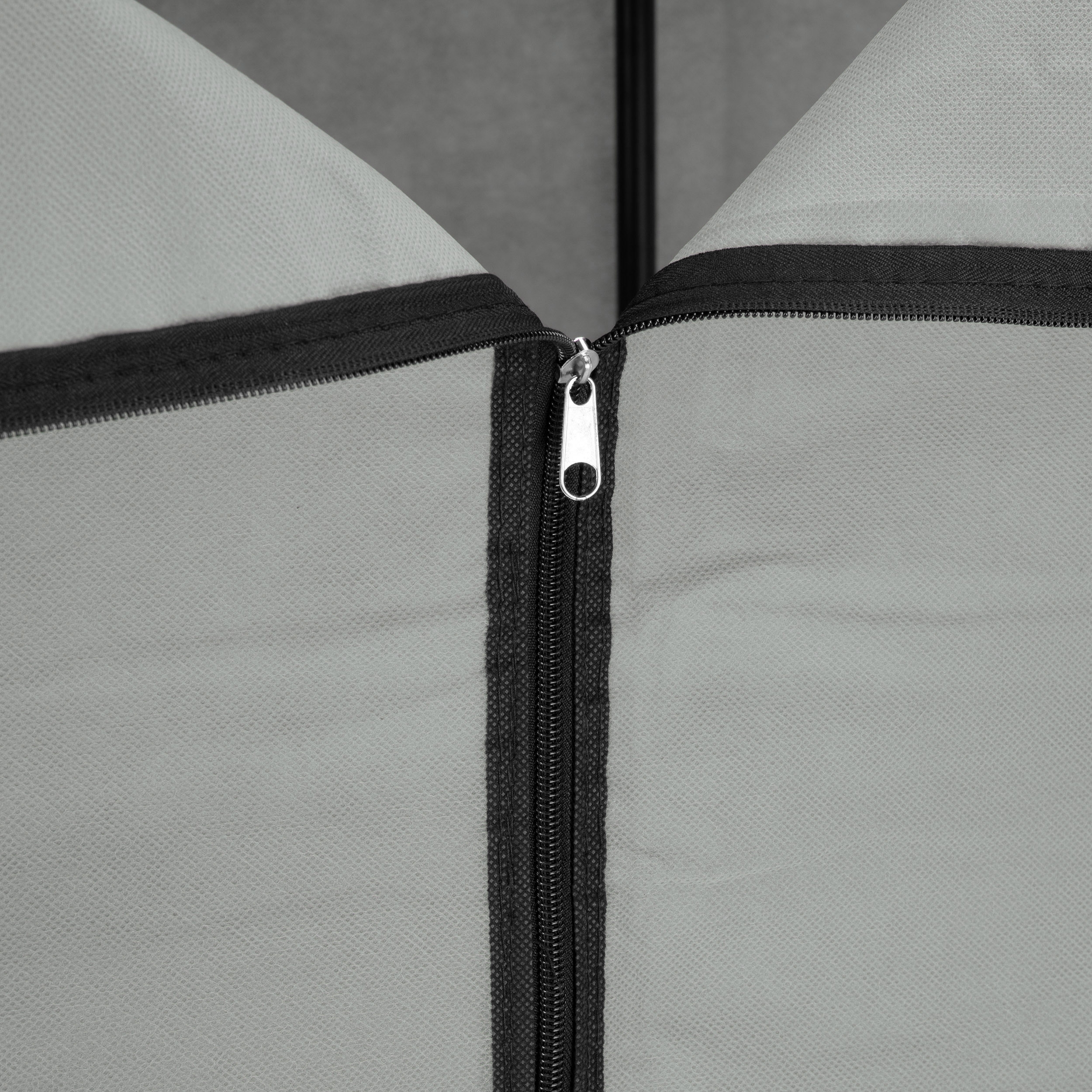 Dzięki zamkowi błyskawicznemu możesz w pełni zasłonić zawartość szafy, co pozwala na estetyczne ukrycie ubrań i akcesoriów, nadając wnętrzu schludny wygląd.