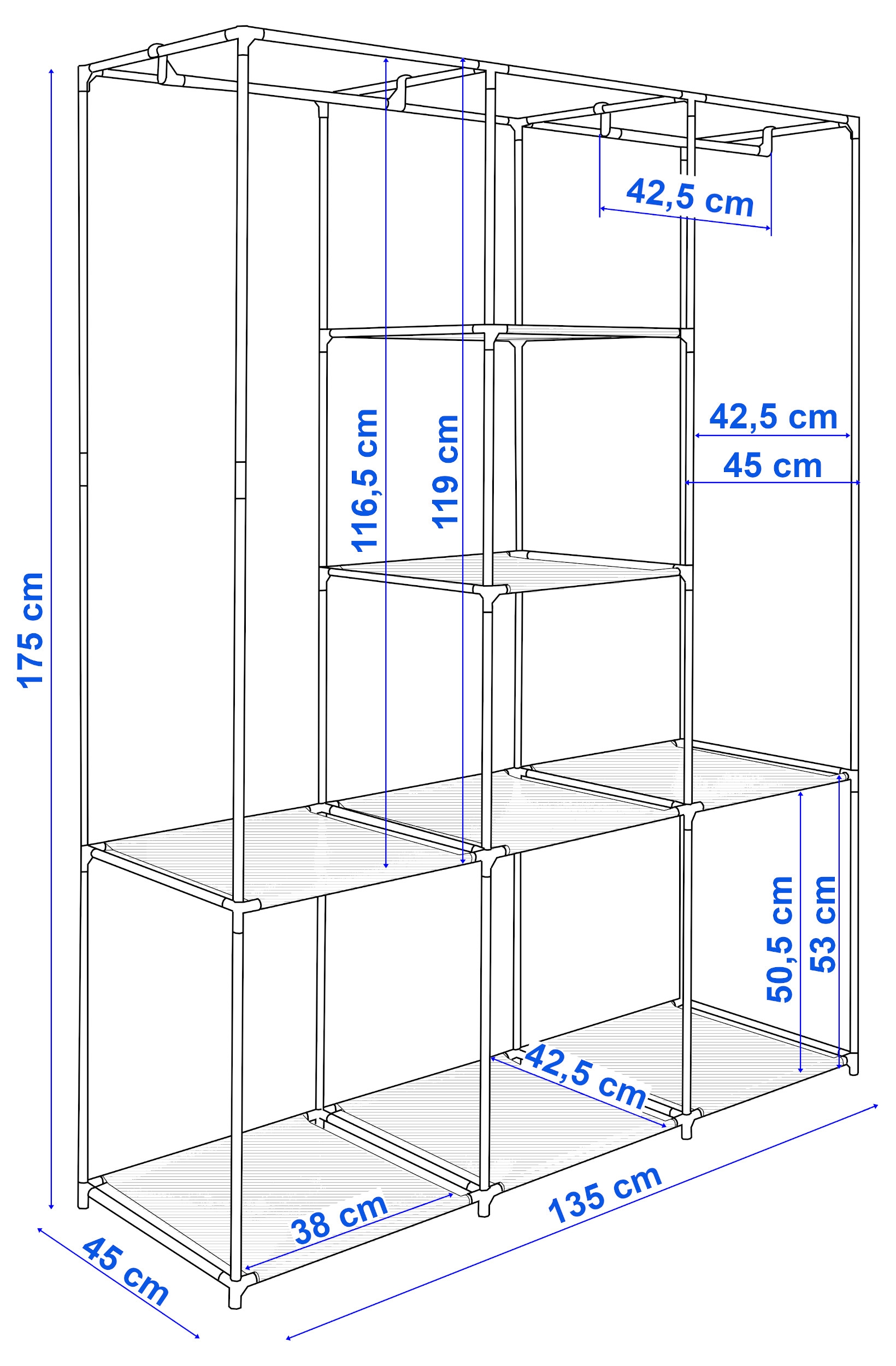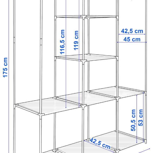 Szafa tekstylna z 8 półkami SONIA z kurtyną szara