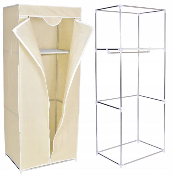 Szafa wykonana ze stalowych ramek tworzących jej szkielet. Na stelaż nałożony jest oddychający dobrej jakości materiał wraz z nadrukowanym widokiem. Jest łatwa do utrzymania czystości i praktyczna, półka idealnie nadaje się do przetrzymywania czapek, szalików, rękawiczek lub innych drobnych rzeczy. W głównej części szafy jest także możliwość zawieszenia ubrań na wieszakach. Lekka i solidna konstrukcja w dowolnej chwili możesz ją złożyć, przestawić.