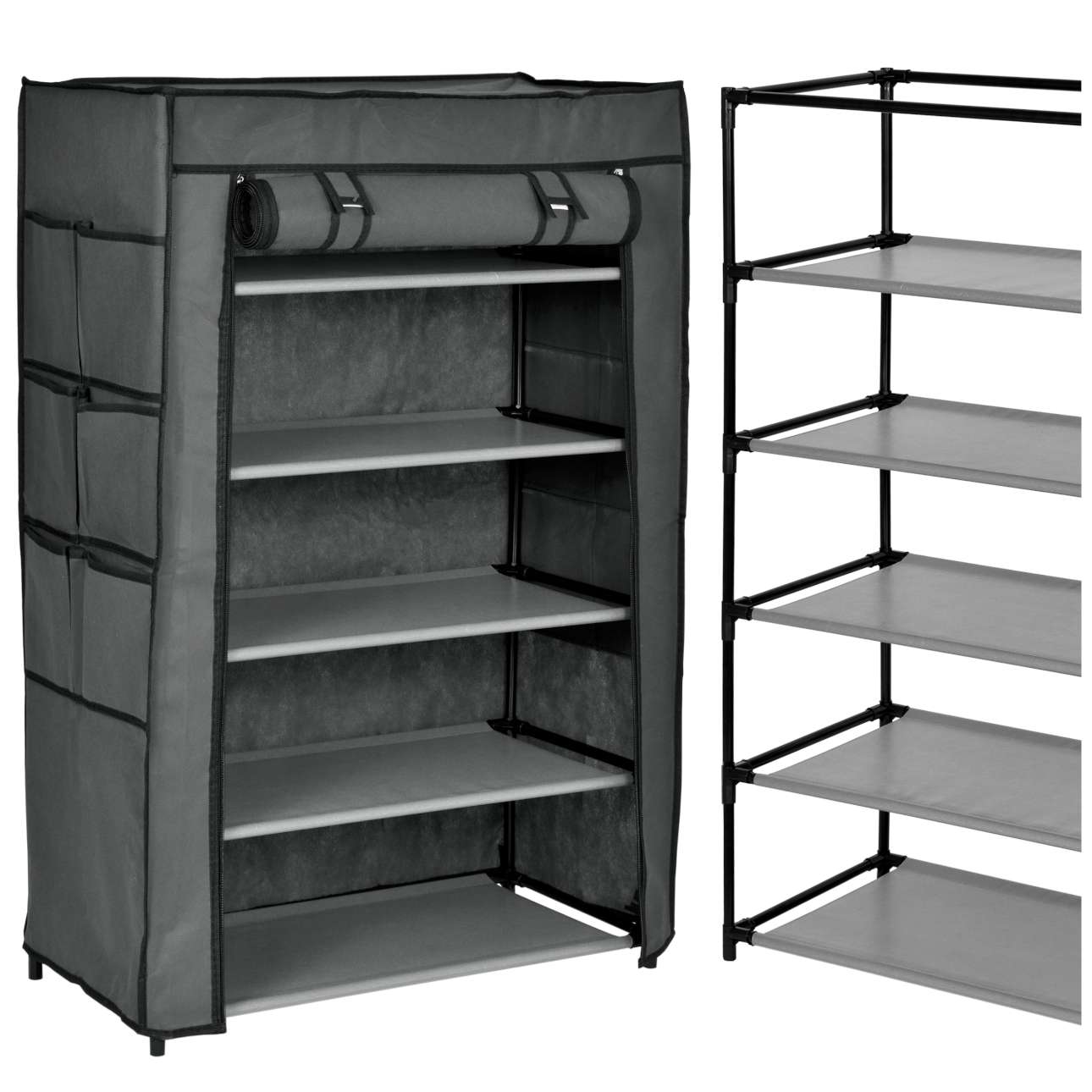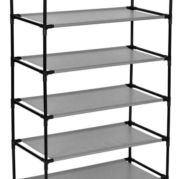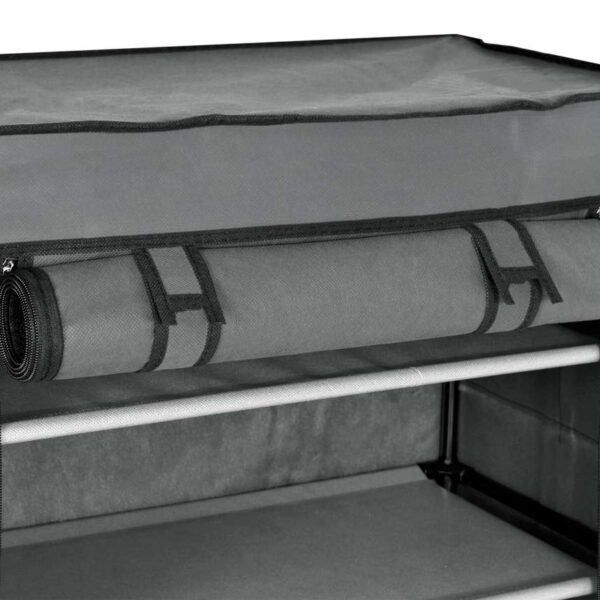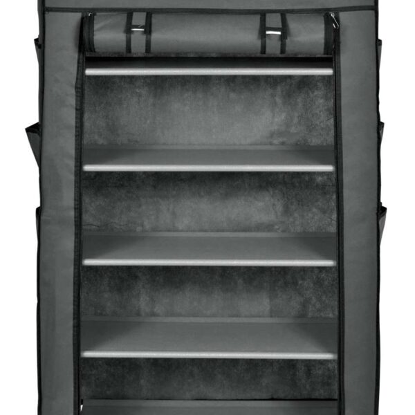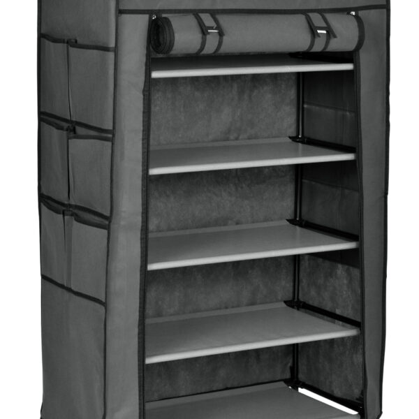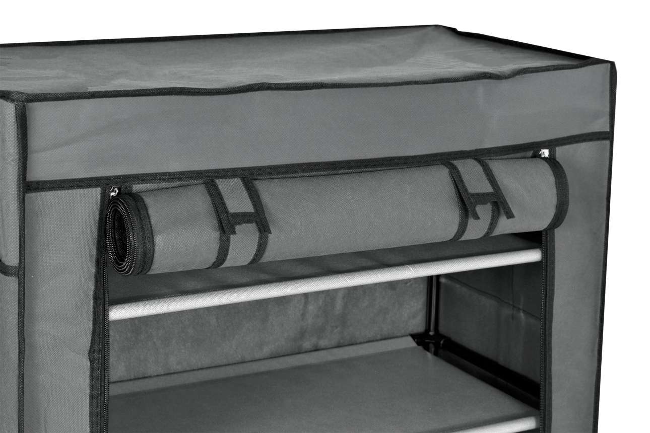Półka, regał na buty wykonany ze stalowych ramek tworzących jej szkielet. Na stelaż nałożony jest oddychający dobrej jakości materiał. Jest łatwa do utrzymania czystości i praktyczna, półka idealnie nadaje się do przetrzymywania czapek, szalików, rękawiczek, butów lub innych drobnych rzeczy. Lekka i solidna konstrukcja w dowolnej chwili możesz ją złożyć, przewieść, przestawić.