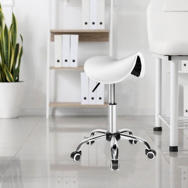 Stołek kosmetyczny Stratum to solidny i praktyczny taboret roboczy z regulacją wysokości. Jest w pełni obrotowy. Ergonomiczne siedzisko wykonane z miękkiej ekoskóry zapewnia komfort pracy nawet przy długotrwałym użytkowaniu. Chromowane elementy i solidna pięcioramienna podstawa zapewniają trwałość i stabilność, niska waga i gumowe kółka ułatwiają przemieszczanie się po pomieszczeniu. Idealny dla salonów kosmetycznych i fryzjerskich, które cenią sobie styl i praktyczność. Kupując u nas, kupujesz od producenta!