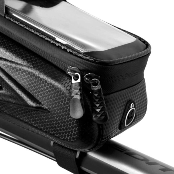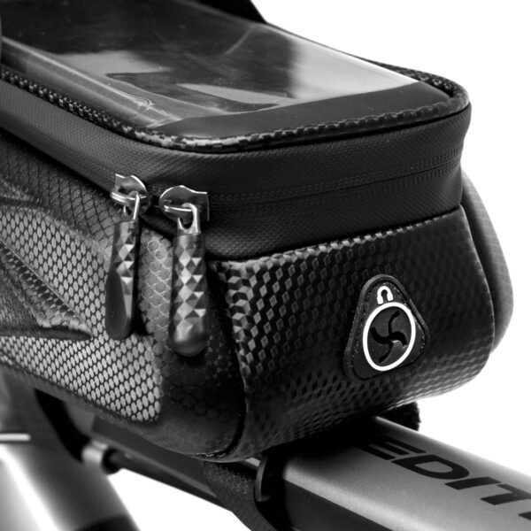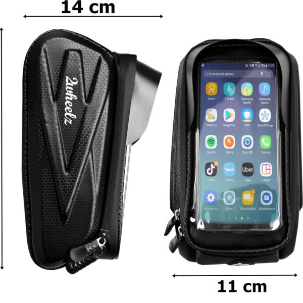 Torba rowerowa marki 2Wheelz to idealny sprzęt rowerowy. Posiada specjalny pokrowiec na telefon z funkcją obsługi ekranu dotykowego. Sakwa pasuje do wszystkich modeli smartfonów do 7 cali. Wykonana z materiałów najwyższej jakości z zachowaniem dbałości o każdy detal. Jest wodoodporna, ma laminowany zamek główny i solidne rzepy. Pojemna główna komora z przegrodami bezproblemowo pomieści najpotrzebniejsze rzeczy jak: dokumenty, klucze, okulary itp. Sakwa ma również wyjście słuchawkowe, dzięki któremu komfortowo możemy słuchać ulubionej muzyki.