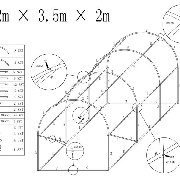 Tunel foliowy – szklarnia ogrodowa AUREA 2×3,5m