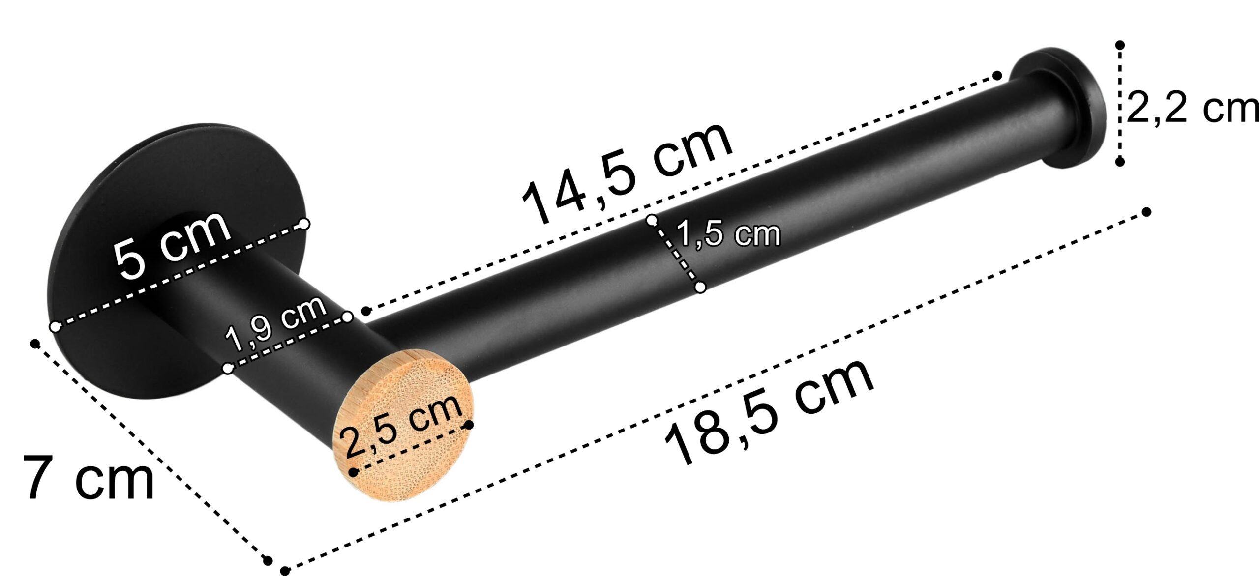 Ale to nie wszystko! Uchwyt na papier posiada także wyjątkowy element ozdobny wykonany z drewna bambusowego, nadający mu naturalnego uroku i niepowtarzalności. Dzięki temu, łatwo wkomponuje się zarówno w industrialny styl loftowy, jak i inne aranżacje wnętrz.