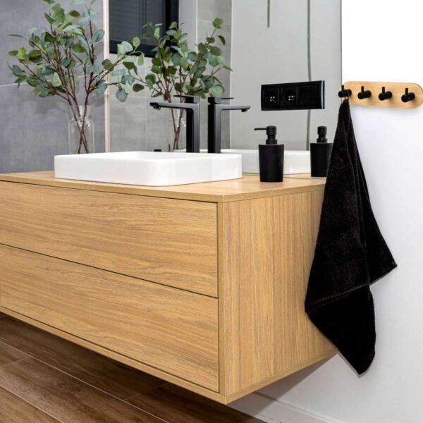 Przeznaczenie: biuro, łazienka | Kolory: czarny mat, naturalny bambus