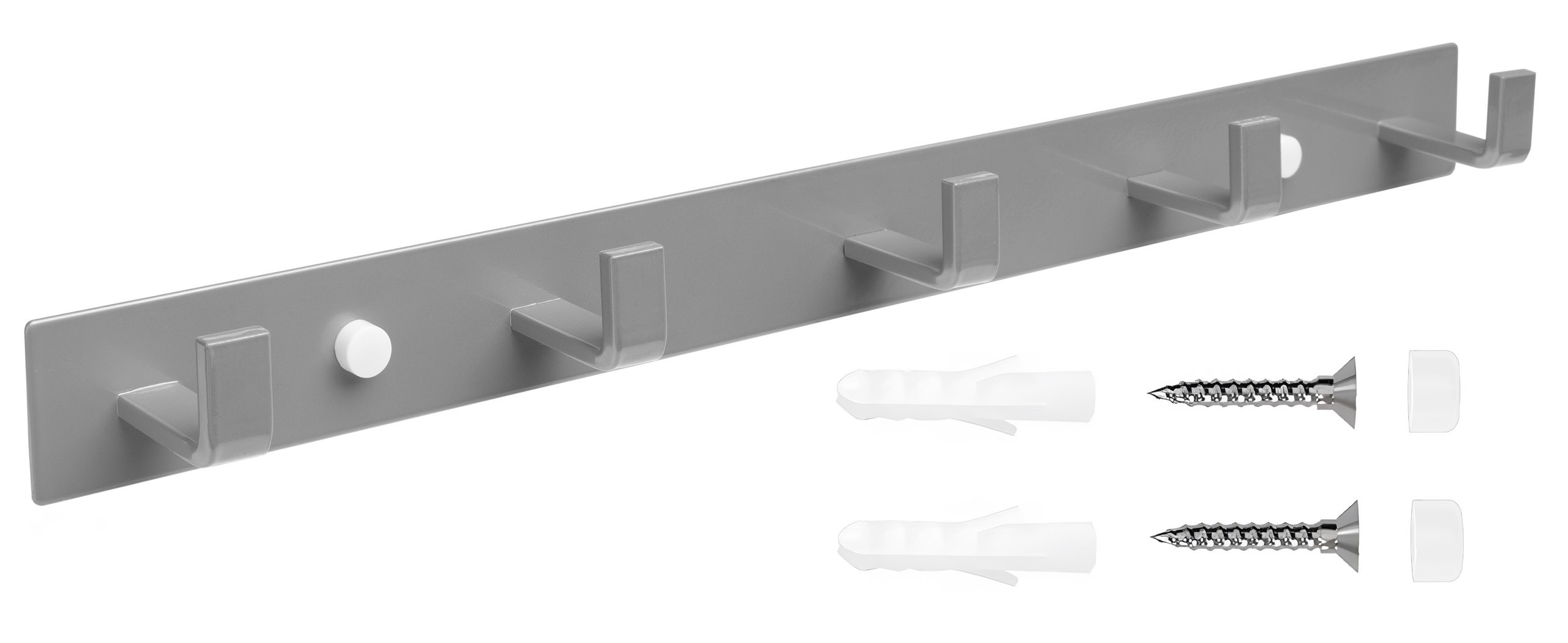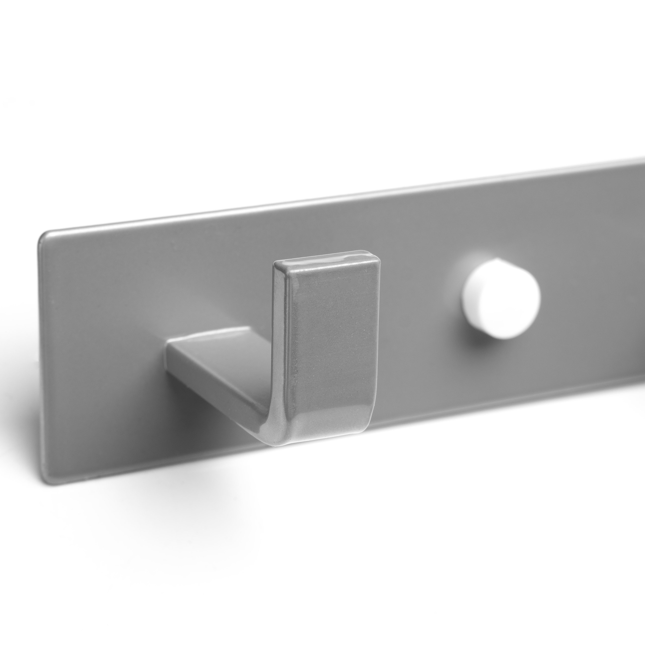 Praktyczny, trwały i uniwersalny wieszak ścienny wykonany ze stali malowanej proszkowo w eleganckim, szarym kolorze. Idealnie sprawdzi się w kuchni, łazience, przedpokoju lub garderobie, oferując wygodne miejsce do zawieszania najpotrzebniejszych przedmiotów. Jego prosty, nowoczesny design sprawia, że doskonale komponuje się zarówno z minimalistycznymi, jak i klasycznymi aranżacjami wnętrz.