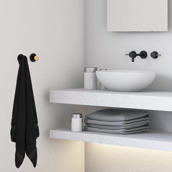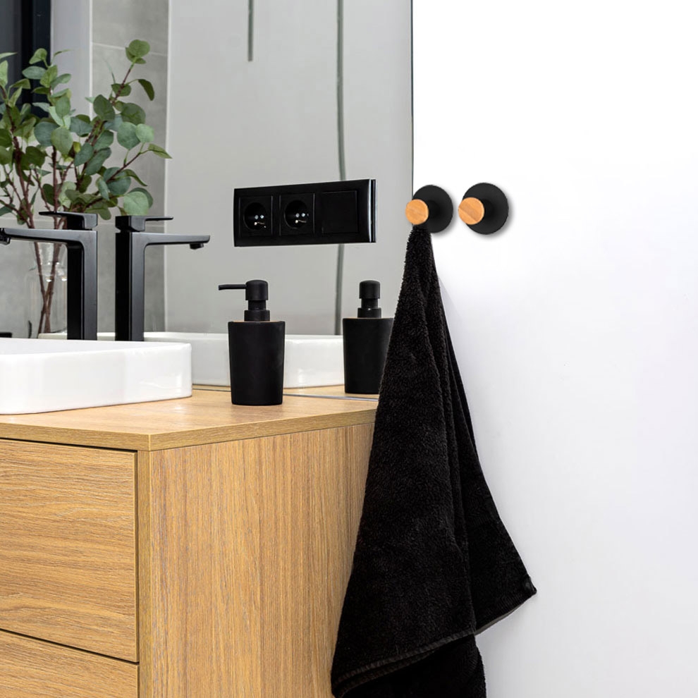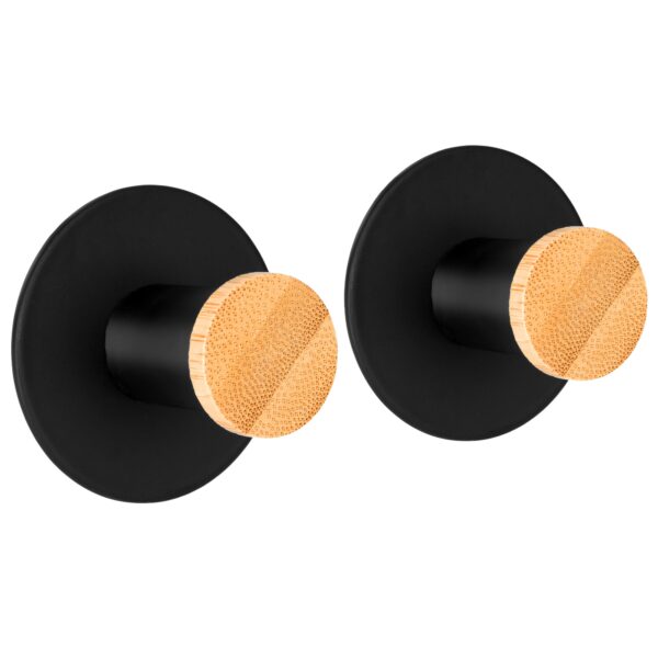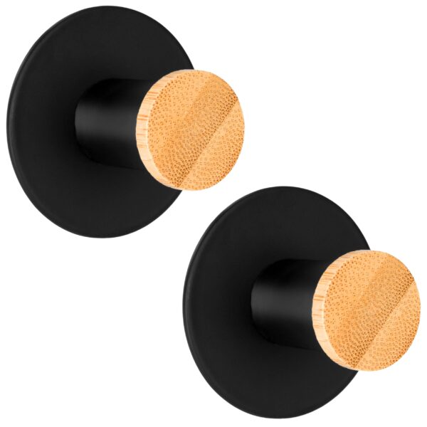 Kovir to komplet dwóch klasycznych, okrągły wieszaków na ręczniki. Wykonany estetycznie ze stali nierdzewnej najwyższej jakości z zachowaniem dbałości o najmniejsze detale. Wieszaki są gładkie, o zaokrąglonych brzegach i wykończone na kolor czarnego matu. Bambusowe elementy świetnie wpisują się w kolekcję dodatków loftowych, dostępnych w naszym sklepie. Czarny matowy kolor sprawia, że model świetnie sprawdzi się w nowocześnie urządzonych wnętrzach w stylu loftowym czy industrialnym.