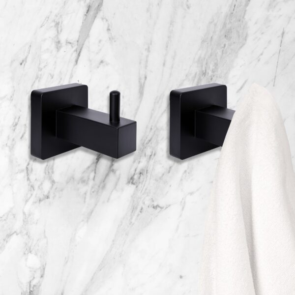 Wieszak Patras został wykonany ze stopu cynkowego najwyższej jakości z zachowaniem dbałości o najmniejsze detale. Uchwyt jest gładki o zaokrąglonych rogach i wykończony na kolor głębokiej matowej czerni. Czarny kolor sprawia, że doskonale sprawdzi się w każdej łazience. Idealnie pasuje do stylu loftowego.