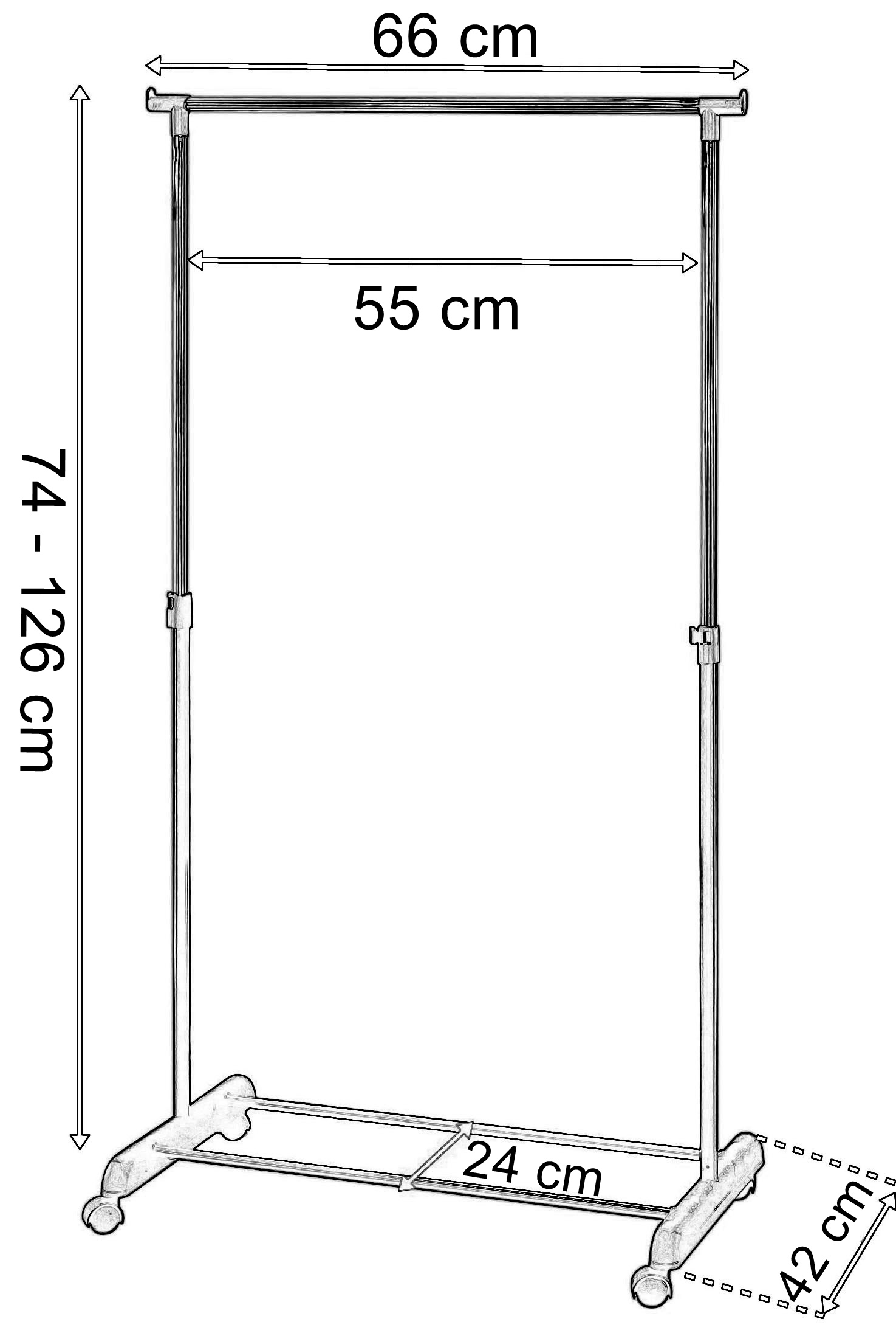 Głębokość wieszaka (mierzona przy kółkach): 42 cm,