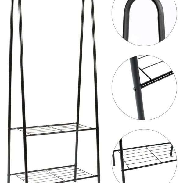 Jego przeznaczenie zależy od Ciebie. Wieszak wyposażony w górny drążek oraz dwie półki w dolnej części.