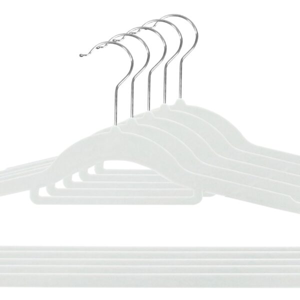 Wieszaki welurowe idealne do szafy, garderoby czy też ekspozycji odzieży. Wieszaki wykonane są z plastiku, pokryte są w całości bardzo miłym w dotyku welurem. Ich aksamitna powierzchnia zapobiega zsuwaniu się ubrań, a właściwe wyprofilowanie sprawia, że tkaniny nie ulegają deformacji. Wieszaki posiadają metalowy haczyk.