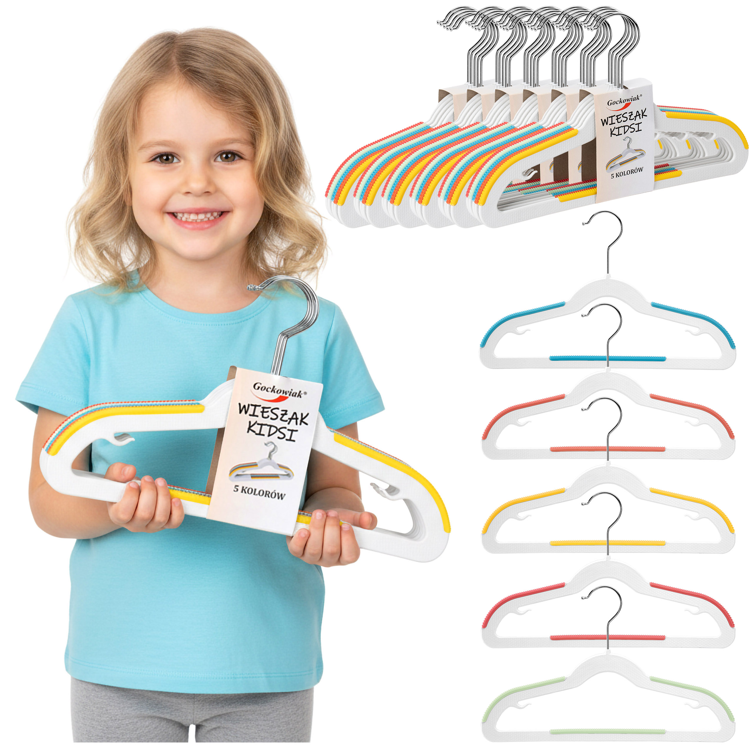 Wieszaki dziecięce KIDSI komplet 30 sztuk wielokolorowe