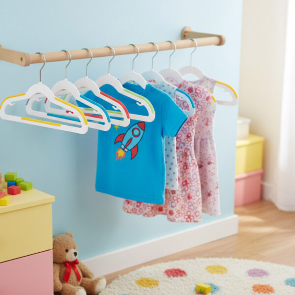✨ Kolorowe wieszaki dla dzieci Kidsi – Zestaw 30 sztuk, który wprowadzi porządek i radość do dziecięcej szafy! ✨