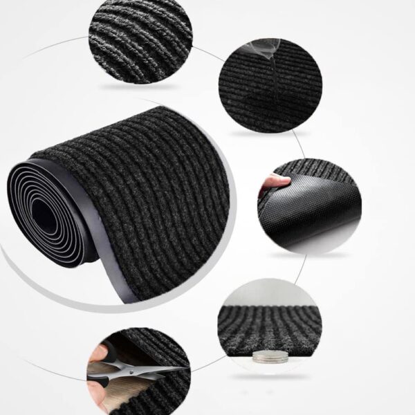 Nasze wycieraczki posiadają antypoślizgową gumę gwarantującą stałe jej położenie. Wycieraczki są łatwe w czyszczeniu, wystarczy je odkurzyć lub spłukać bieżącą wodą. Po zwinięciu zajmują bardzo mało miejsca, dzięki czemu łatwo się je transportuje i przechowuje.
