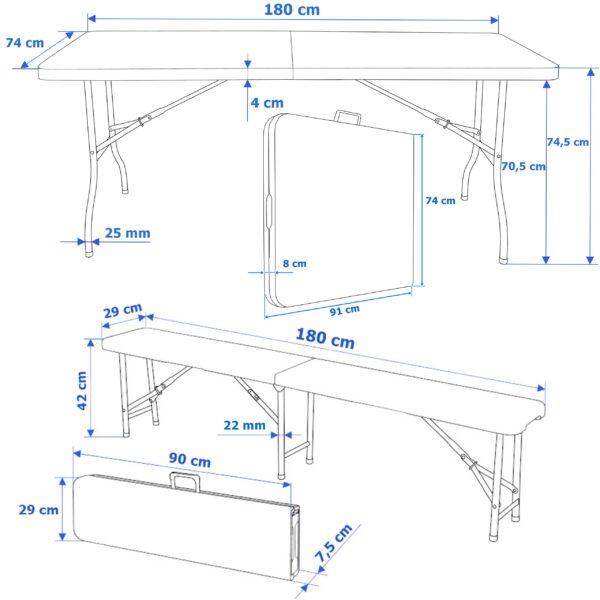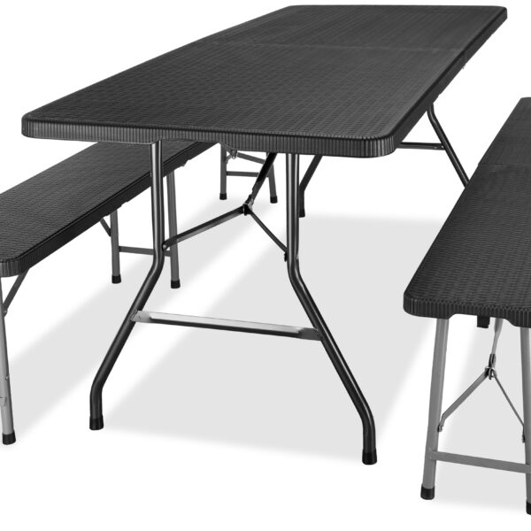 Zestaw cateringowy Rattan czarny stół 180 cm+ 2 ławki