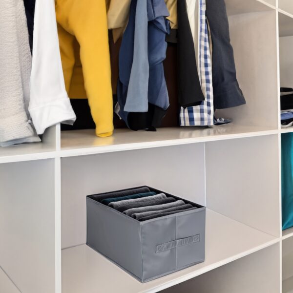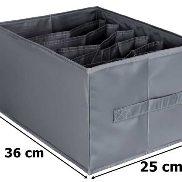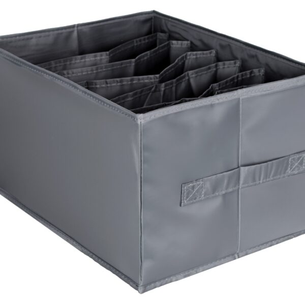 Zestaw dwóch organizerów Liam to idealne rozwiązanie do utrzymania porządku w szafie, szufladzie lub komodzie. Każdy z organizerów ma 7 przegródek, ułatwiając uporządkowanie ubrań, bielizny i akcesoriów. Są praktyczne, szybkie w obsłudze i wyposażone w wygodne rączki. To stylowe rozwiązanie do przechowywania, które usprawni Twój dzień codzienny, niezależnie od tego, co chcesz zorganizować.