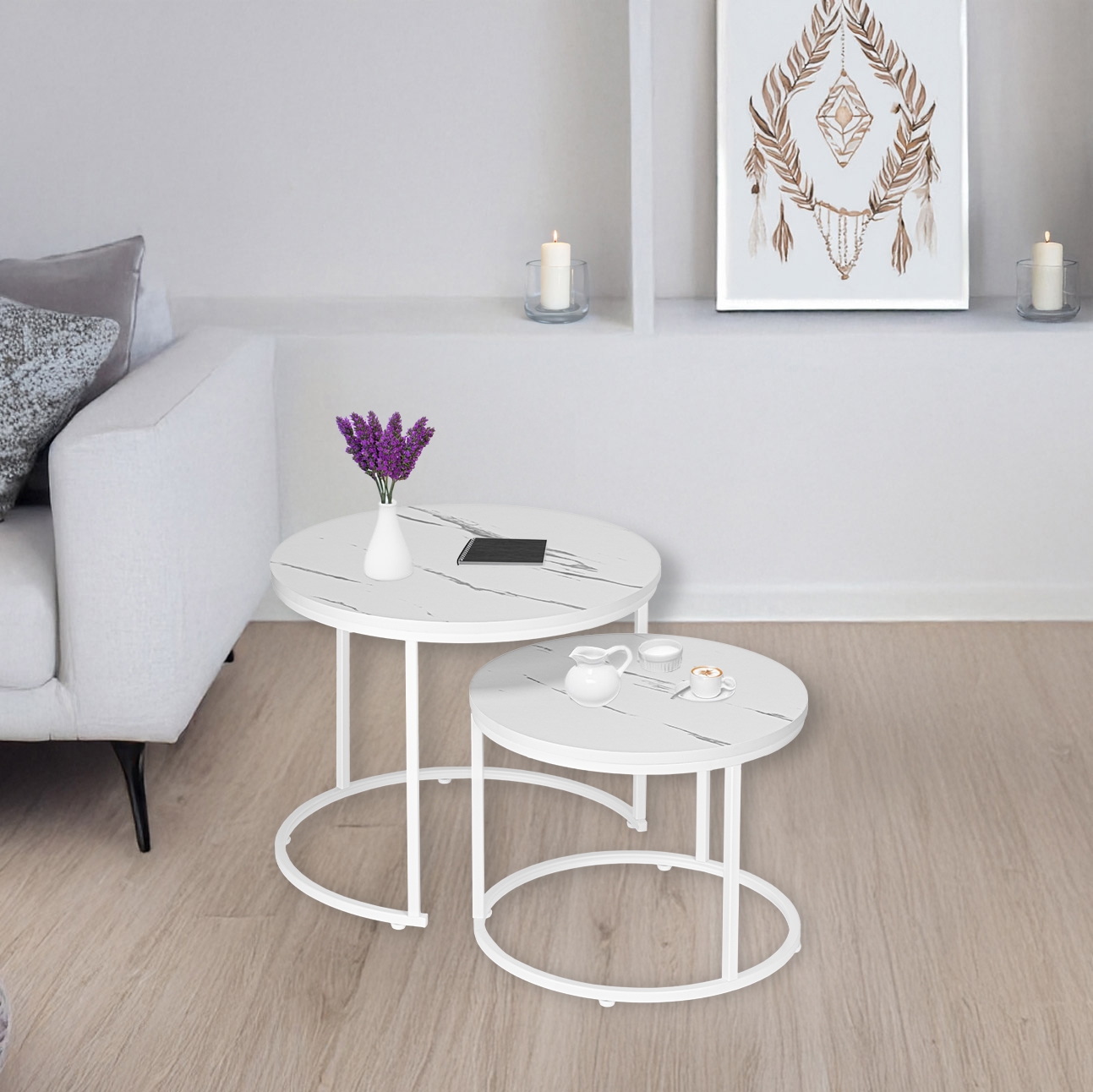 Zestaw dwóch stolików Biały Galen Small Biały Marmur